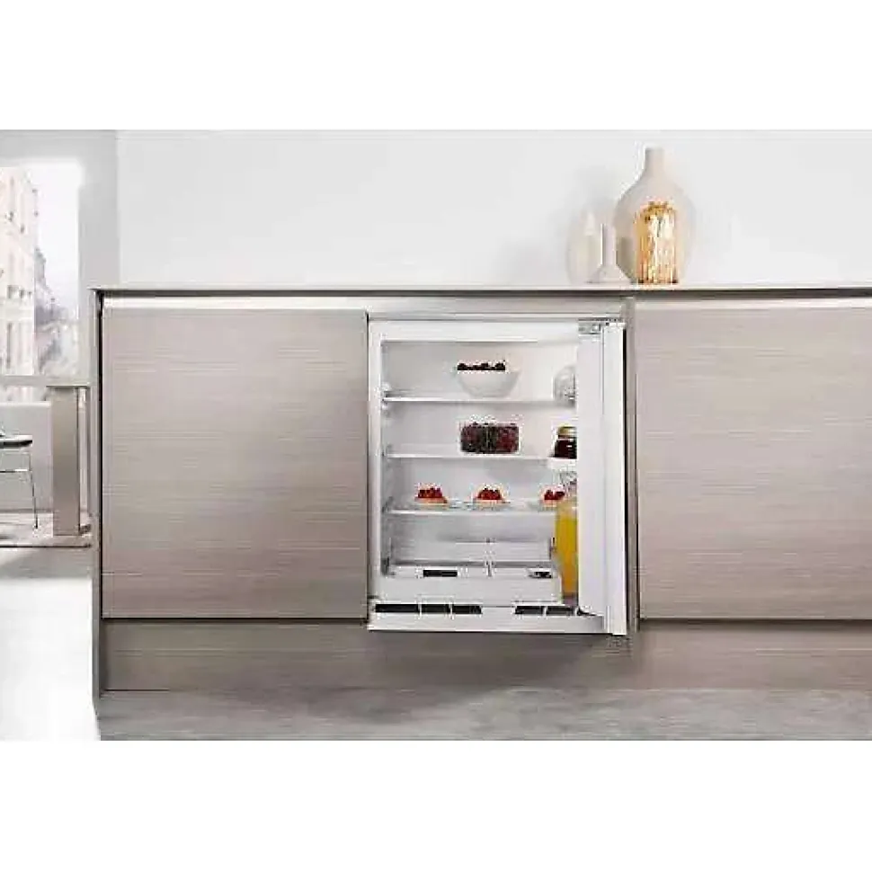 Le réfrigérateur encastrable Whirlpool WBUL021 combine un design compact et élégant avec une grande capacité de 144 litres. Sa technologie 6ème Sens Fresh Control assure une conservation optimale des aliments, tandis que sa porte réversible et son niveau sonore bas de 37 dB en font un équipement pratique et discret. Classé E pour son efficacité énergétique, il consomme seulement 94 kWh par an.