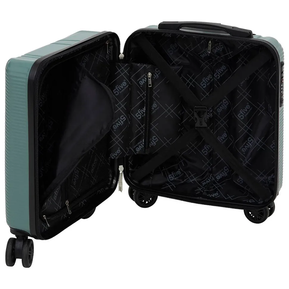 Valise cabine ABS low cost 8 roues vertDESIGN : Valise verte au style épuré et moderne, parfaite pour garder vos affaires organisées et voyager avec élégance.PRATIQUE : Format compact et léger, facile à transporter et à glisser dans vos bagages ou compartiments.ROBUSTESSE : Matériau résistant aux chocs, pour protéger vos effets personnels lors de vos déplacements.MULTI-USAGE : Idéal pour voyages, week-ends ou déplacements professionnels, pratique et élégant à la fois.5FIVE SIMPLY SMART : C’est prouvé, une maison bien rangée c’est la garantie d’un esprit léger. 5five propose des solutions intelligentes pour organiser et aménager chaque pièce de la maison, afin de faciliter le quotidien !Contenu : 1 valiseDimensions : L. 36 x P. 20 x H. 45 cmColoris : VertMarque : 5 five simply smart