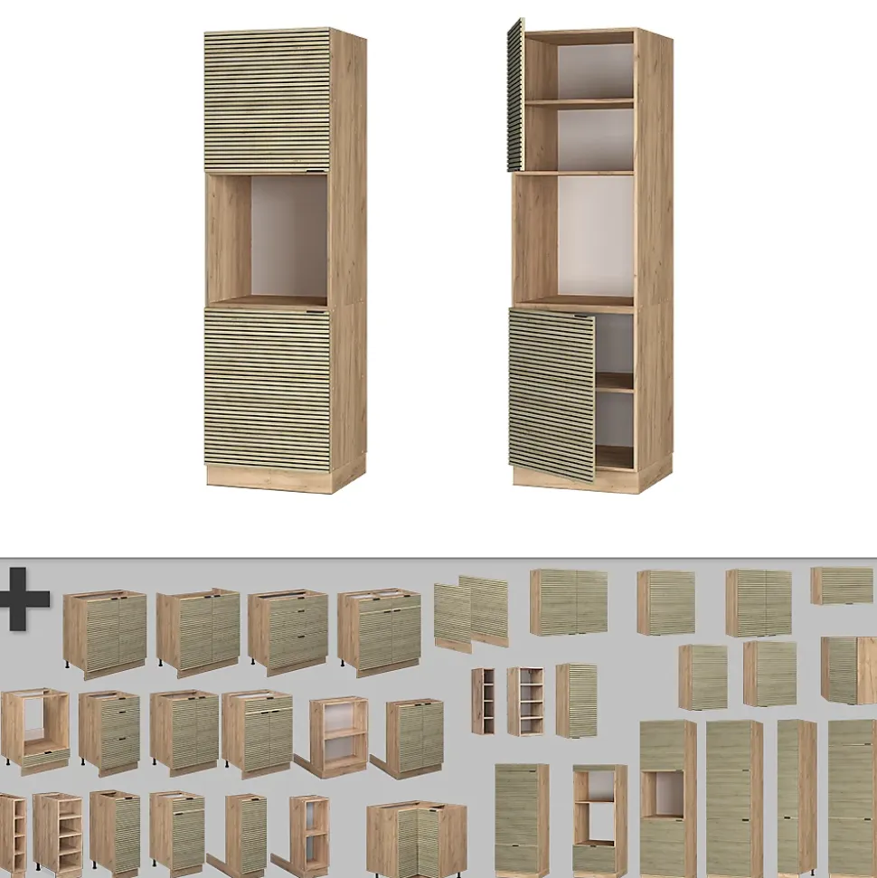 Les armoires de cuisine Fame-Line offrent une qualité premium avec des poignées métalliques solides, des charnières soft-closing pratiques et des coulisses métalliques à sortie totale à des prix raisonnables.L’armoire de la cuisinière offre la possibilité d’acheter des modules supplémentaires et de les déplacer à volonté. Les façades en MDF complètent le design.DIMENSIONS : l’armoire de cuisine pour la cuisinière encastrée a une largeur de 60 cm, une hauteur de 206,8 cm et une profondeur de 58,1 cm. Toutes les dimensions détaillées sont indiquées sur les photos.MATÉRIAU : le meuble de cuisine est en panneau de particules de 16 mm, facile à entretenir, avec un revêtement en résine de mélamine. Les façades sont fabriquées en MDF de haute qualité.LIVRAISON : Armoire de cuisine en kit (remarque : la décoration n’est pas comprise dans la livraison), instructions de montage, matériel de montage
