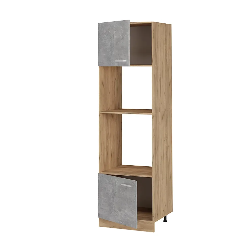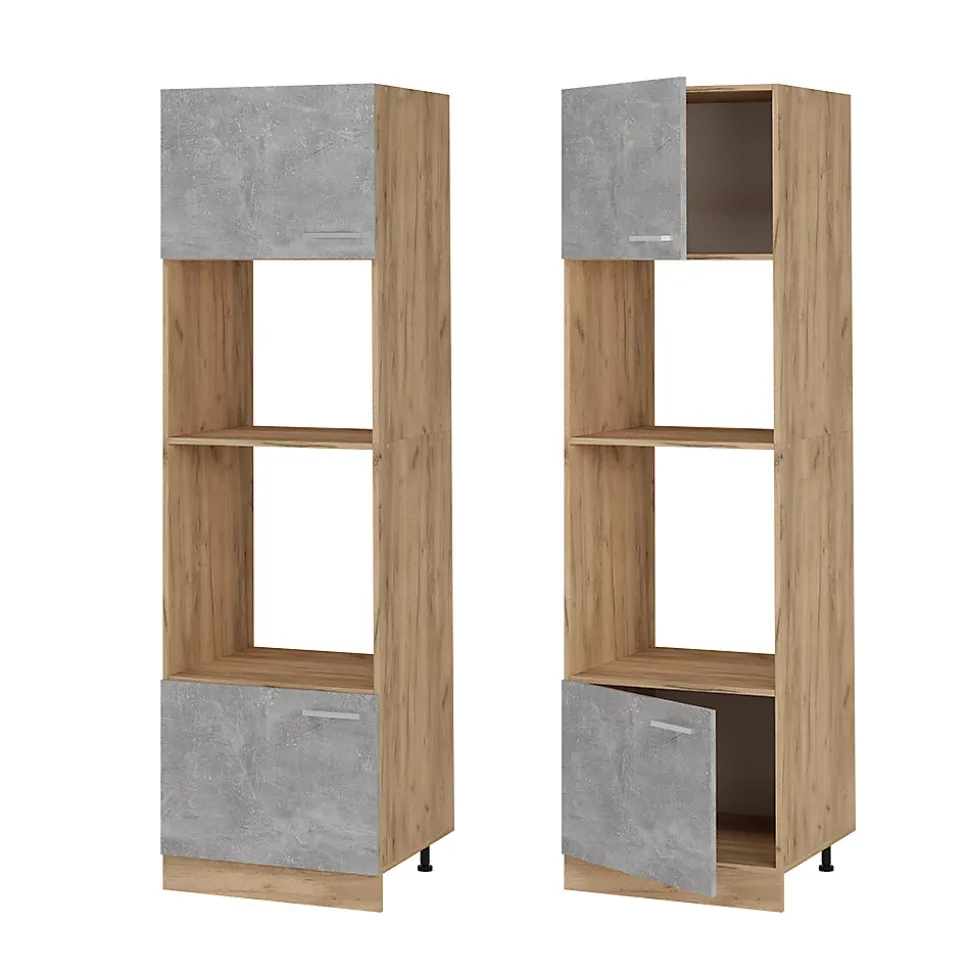 Ce meuble de cuisine pour four à micro-ondes « R-Line » est une bonne conception universelle pour chaque maison, offrant un plaisir d’utilisation grâce à son design optimal et son apparence agréable.Le meuble pour micro-onde est un produit modulable, adaptable selon vos besoins et vos envies. Des modules supplémentaires peuvent être ajoutés. La hauteur des pieds est ajustable.DIMENSIONS : L’Armoire de cuisine pour micro-ondes mesure 60 cm – Largeur, 207 cm – Hauteur, 57,2 cm – Profondeur. Toutes les tailles détaillées sont indiquées sur les photos.MATÉRIAU: La colonne four et micro onde est composée de panneaux de particules de 16 mm faciles à entretenir, avec un revêtement en résine mélamine.CONTENU DE LA LIVRAISON: Armoire pour micro-ondes à monter soi-même (Remarque: la décoration n’est pas incluse dans la livraison), Instructions de montage, Matériel de montage