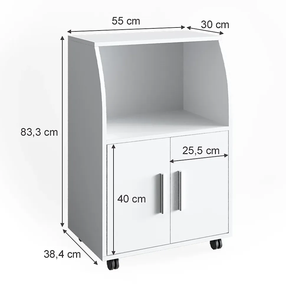 La Table d’appoint de cuisine à roulettes « Elio » est un indispensable pour chaque maison, avec sa conception pratique et son design optimal. Son apparence agréable et le plaisir de son utilisation en font un choix universel.Le minibar de cuisine à roulettes est pratique grâce à ses rôles, ses étagères ouvertes et fermées et son espace pour un micro-ondes. Il permet d’optimiser l’espace dans la cuisine et de déplacer facilement les boissons et aliments.Mesure : L’armoire de cuisine à roulettes a une largeur de 55 cm, une hauteur de 83 cm et une profondeur de 38 cm. Toutes les tailles détaillées sont indiquées sur les photos.MATÉRIAU: Les meubles de cuisine sont composés de panneaux de particules de 16 mm faciles à entretenir, avec un revêtement en résine mélamine.CONTENU DE LA LIVRAISON: Conteneur à roulettes à monter soi-même (Remarque: la décoration n’est pas incluse dans la livraison), Instructions de montage, Matériel de montage.