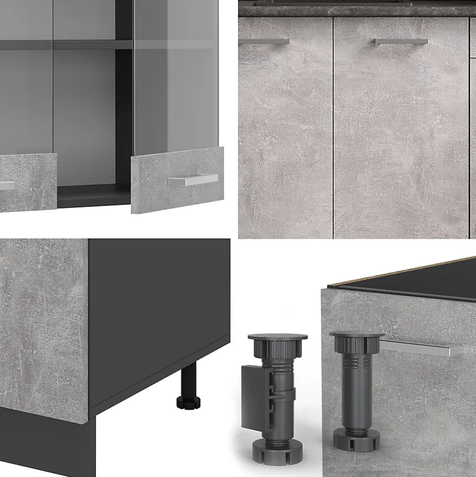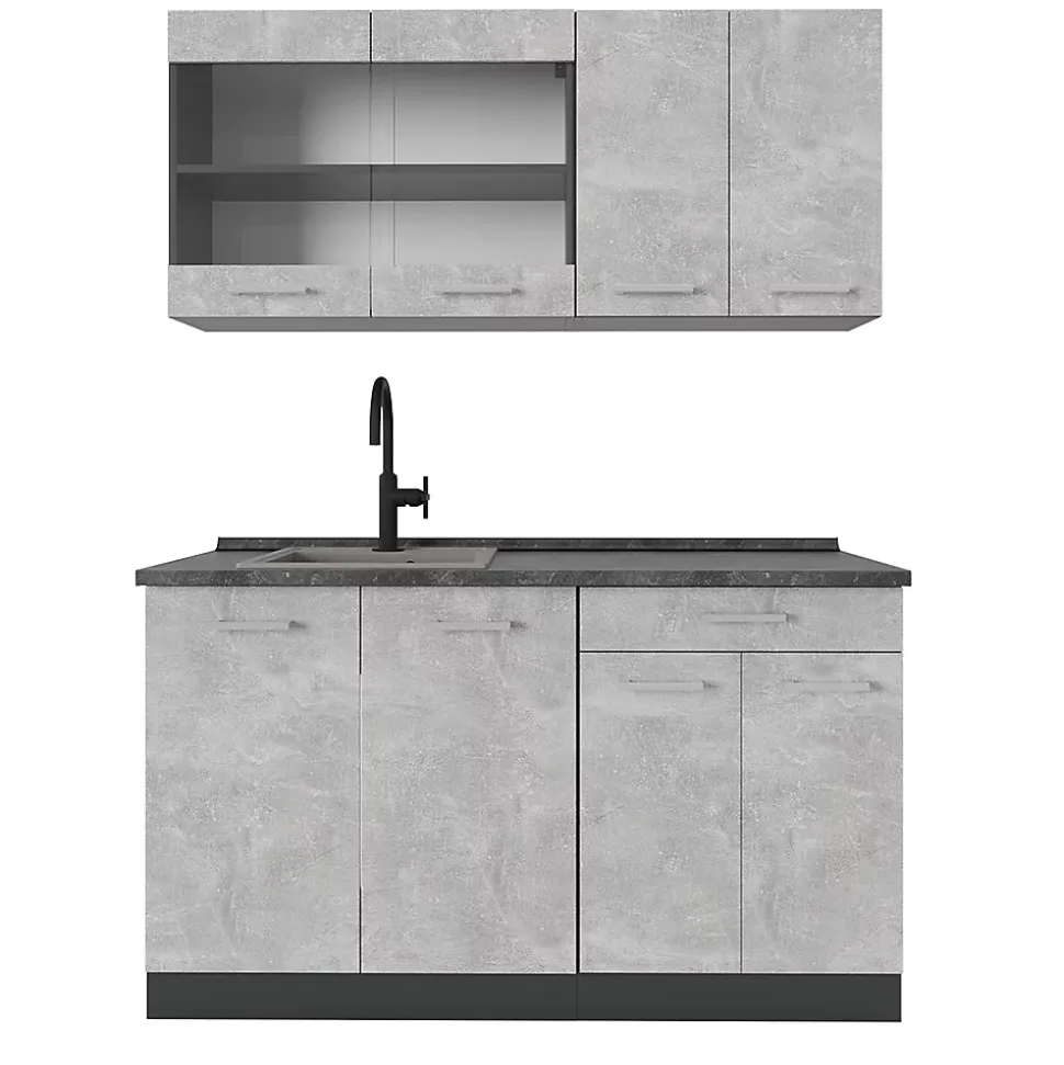 Les cuisines de la série R-Line se distinguent par un design optimal et une polyvalence universelle. En option, nous proposons également des panneaux de lave-vaisselle entièrement intégrés de la marque Vicco.La mini cuisine offre de nombreux avantages grâce à ses caractéristiques uniques. Les modules peuvent être convertis selon vos préférences et vous pouvez même obtenir des modules supplémentaires pour répondre à vos besoins spécifiques.DIMENSIONS : Le Bloc de cuisine a une taille générale de 140 cm, la profondeur et la hauteur des modules inférieurs et supérieurs sont présentées sur les photos.MATÉRIAU: La kitchenette est composée de panneaux de particules de 16 mm faciles à entretenir, avec un revêtement en résine mélamineCONTENU DE LIVRAISON : Bloc cuisine sans plan de travail, matériel de montage, instructions de montage (sauf indication contraire, les appareils électroménagers et les décorations ne sont pas compris dans la livraison).