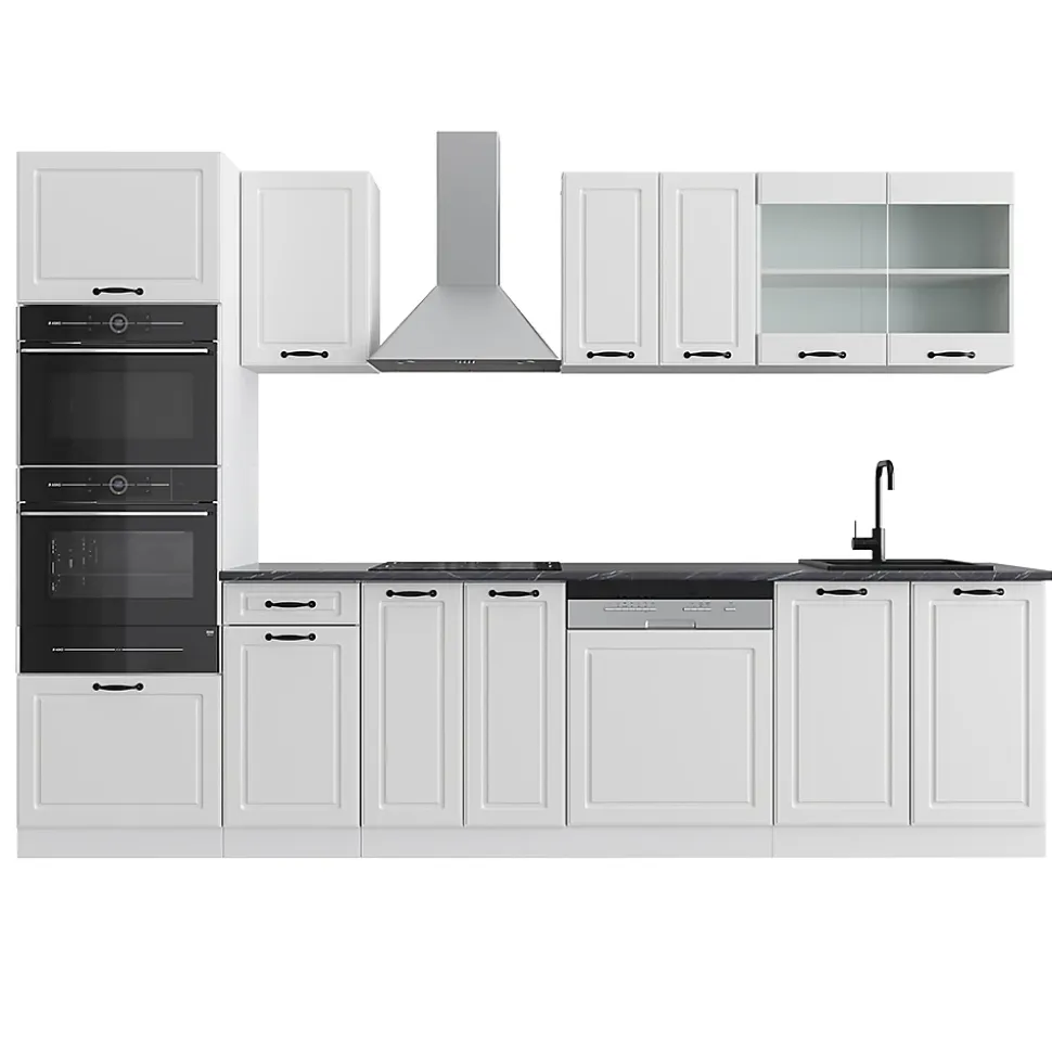 Les cuisines de la série R-Line se distinguent par un design optimal et une polyvalence exceptionnelle. En option, nous proposons le système LED Vicco ou une large gamme d’éviers Bergstroem.La kitchenette offre des modules convertis selon les souhaits du client, avec la possibilité d’obtenir des modules supplémentaires au besoin. Les pieds sont ajustables pour une hauteur personnalisée.DIMENSIONS : Le Bloc de cuisine a une taille générale de 300 cm, la profondeur et la hauteur des modules inférieurs et supérieurs sont présentées sur les photos.MATÉRIAU: La kitchenette modulaire est composée de panneaux de particules de 16 mm faciles à entretenir, avec un revêtement en résine mélamineCONTENU DE LIVRAISON : Bloc cuisine sans plan de travail, matériel de montage, instructions de montage (sauf indication contraire, les appareils électroménagers et les décorations ne sont pas compris dans la livraison).