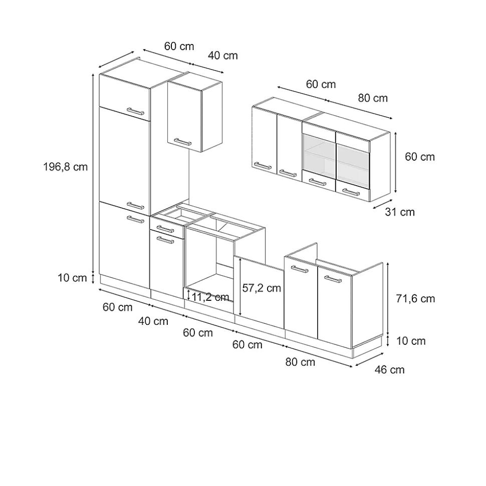 Vicco Cuisine Bleu-gris/anthracite 300cm sans PT