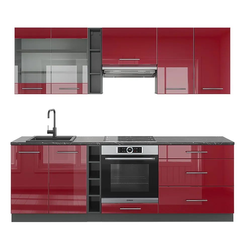 Les cuisines de la série Fame-Line offrent une qualité premium à des prix équitables. En option, nous proposons également des panneaux de lave-vaisselle entièrement intégrés de la marque Vicco.Avec « Fame-Line », choisissez entre des concepts de cuisine prêts à l’emploi ou élargissez-les à votre guise avec des modules supplémentaires.DIMENSIONS : Le Bloc de cuisine a une taille générale de 235 cm, la profondeur et la hauteur des modules inférieurs et supérieurs sont présentées sur les photos.MATÉRIAU: La kitchenette modulaire est composée de panneaux de particules de 16 mm faciles à entretenir, avec un revêtement en résine mélamine. Toutes les façades des unités de cuisine sont fabriquées en MDF de haute qualité.CONTENU DE LIVRAISON : bloc de cuisine avec plan de travail, matériel de montage, instructions de montage (sauf indication contraire, les appareils électroménagers et les décorations ne sont pas compris dans la livraison)