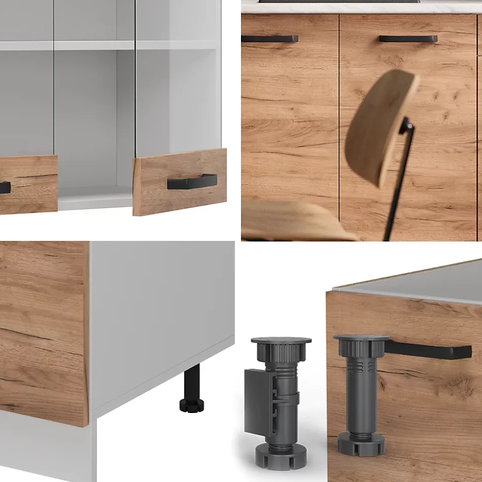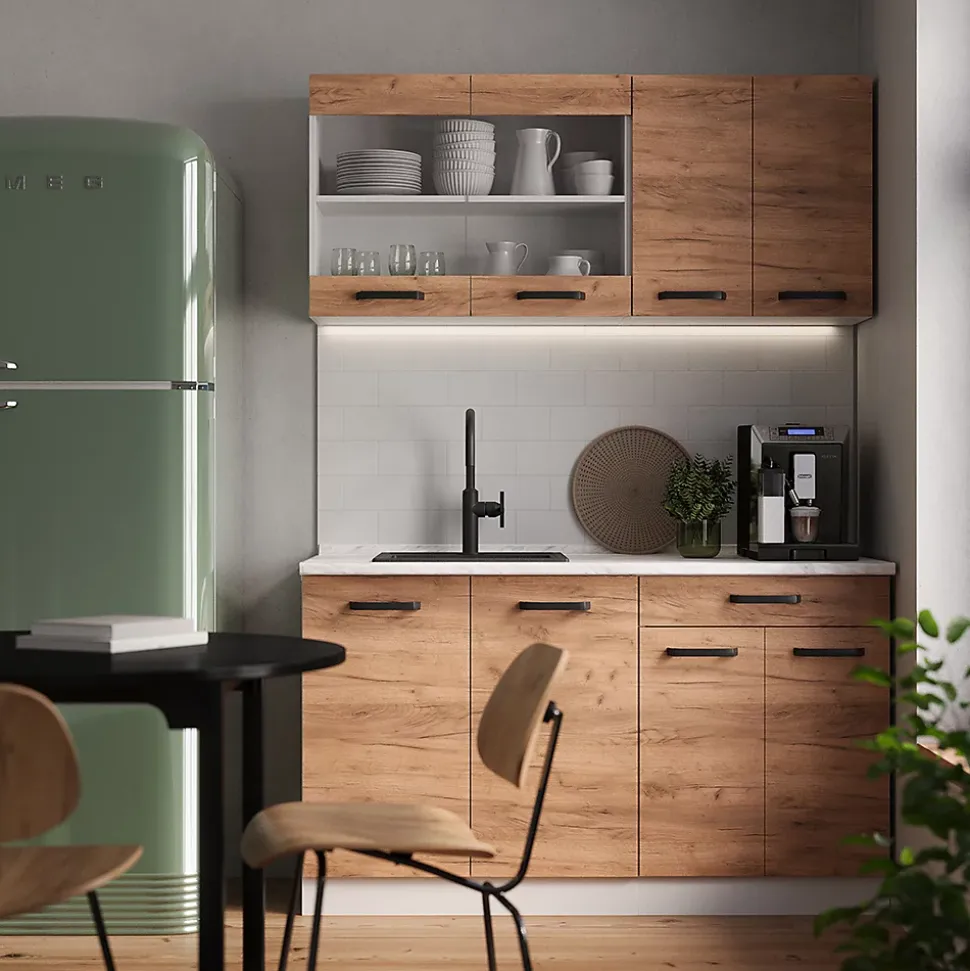 Les cuisines de la série R-Line se distinguent par un design optimal et une polyvalence universelle. En option, nous proposons également des panneaux de lave-vaisselle entièrement intégrés de la marque Vicco.La mini cuisine est personnalisable grâce à ses modules convertibles selon vos besoins. Vous pouvez également ajouter des modules supplémentaires à tout moment. La hauteur des pieds peut être ajustée pour s’adapter à votre espace de vie.DIMENSIONS : Le Bloc de cuisine a une taille générale de 140 cm, la profondeur et la hauteur des modules inférieurs et supérieurs sont présentées sur les photos.MATÉRIAU: La kitchenette est composée de panneaux de particules de 16 mm faciles à entretenir, avec un revêtement en résine mélamineCONTENU DE LIVRAISON : Bloc cuisine sans plan de travail, matériel de montage, instructions de montage (sauf indication contraire, les appareils électroménagers et les décorations ne sont pas compris dans la livraison).