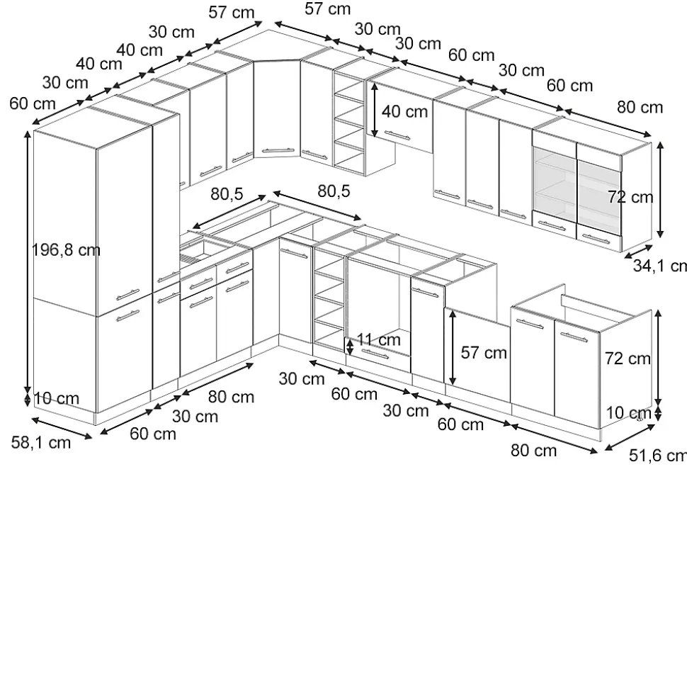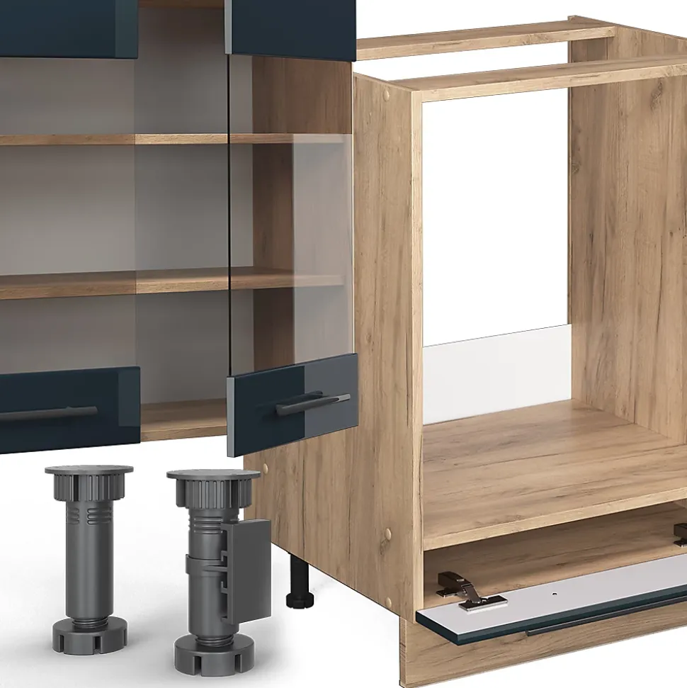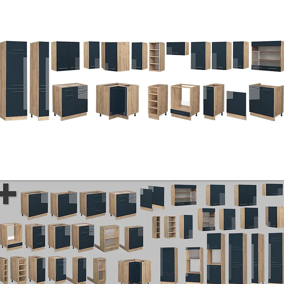 Vicco Cuisine en angle bleu foncé brillant/chêne doré 257x60cm , PT Marbre