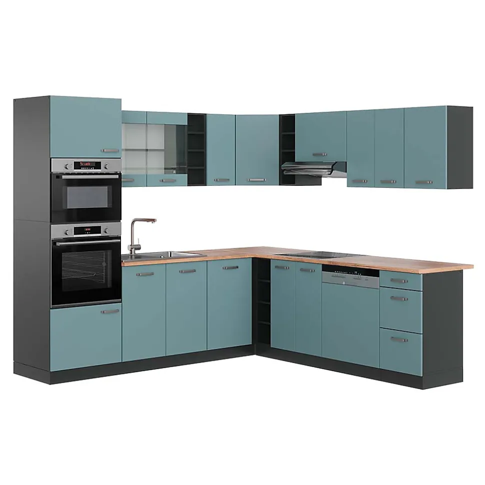 Vicco Cuisine en angle Bleu-gris/anthracite 237x247cm , PT Chêne