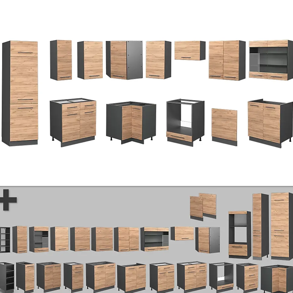 Les cuisines de la série Fame-Line offrent une qualité premium à des prix équitables. En option, nous proposons également des panneaux de lave-vaisselle entièrement intégrés de la marque Vicco.Avec « Fame-Line », choisissez entre des concepts de cuisine prêts à l’emploi ou élargissez-les à votre guise avec des modules supplémentaires.DIMENSIONS : La Cuisine en forme de L a une taille générale de 227×287 cm, la profondeur et la hauteur des modules inférieurs et supérieurs sont présentées sur les photos. Les meubles bas ont une profondeur de 51,6 cm.MATÉRIAU: La cuisine modulaire en angle est composée de panneaux de particules de 16 mm faciles à entretenir, avec un revêtement en résine mélamine.CONTENU DE LIVRAISON : bloc de cuisine avec plan de travail, matériel de montage, instructions de montage (sauf indication contraire, les appareils électroménagers et les décorations ne sont pas compris dans la livraison)