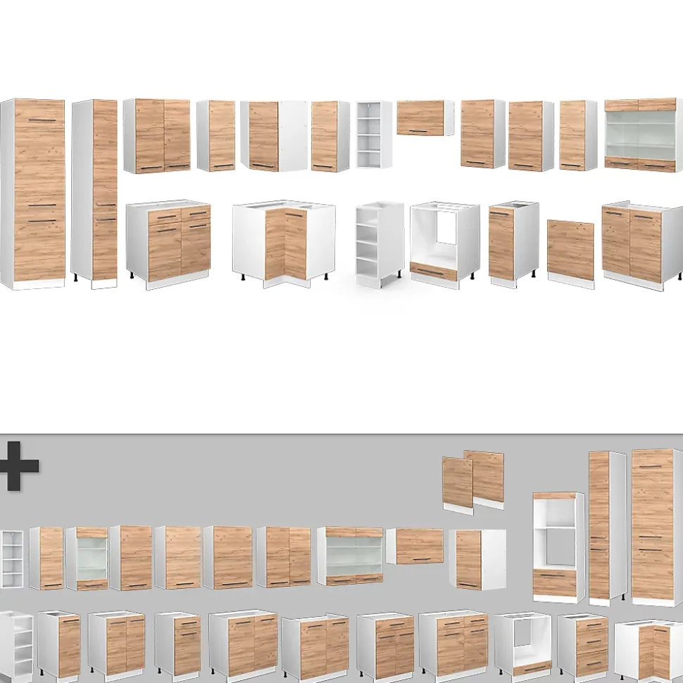 Les cuisines de la série Fame-Line offrent une qualité premium à des prix équitables. En option, nous proposons également des panneaux de lave-vaisselle entièrement intégrés de la marque Vicco.Avec « Fame-Line », choisissez entre des concepts de cuisine prêts à l’emploi ou élargissez-les à votre guise avec des modules supplémentaires.DIMENSIONS : La Cuisine en forme de L a une taille générale de 257×347 cm, la profondeur et la hauteur des modules inférieurs et supérieurs sont présentées sur les photos.MATÉRIAU: La cuisine modulaire en angle est composée de panneaux de particules de 16 mm faciles à entretenir, avec un revêtement en résine mélamine.CONTENU DE LIVRAISON : Bloc cuisine sans plan de travail, matériel de montage, instructions de montage (sauf indication contraire, les appareils électroménagers et les décorations ne sont pas compris dans la livraison).