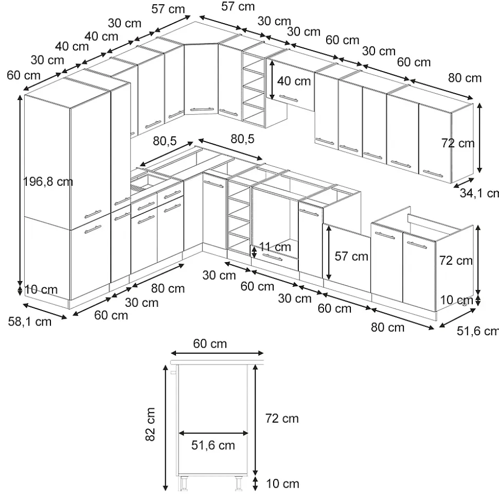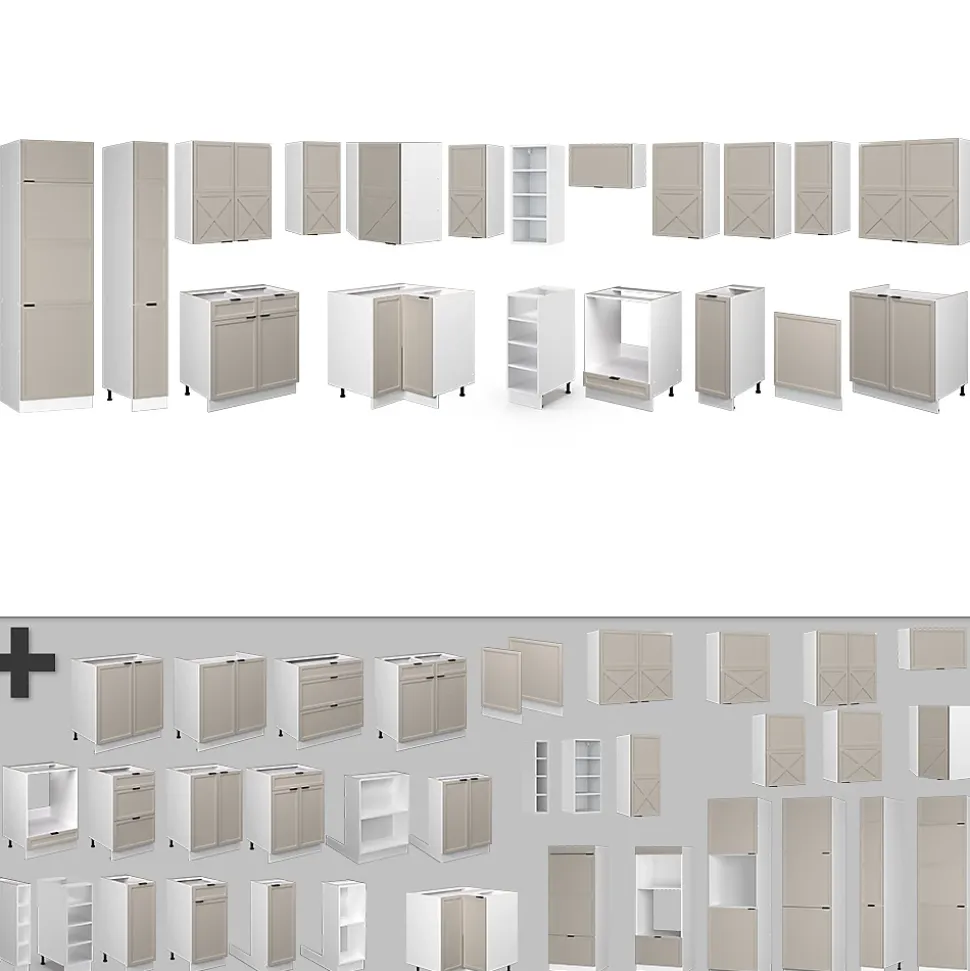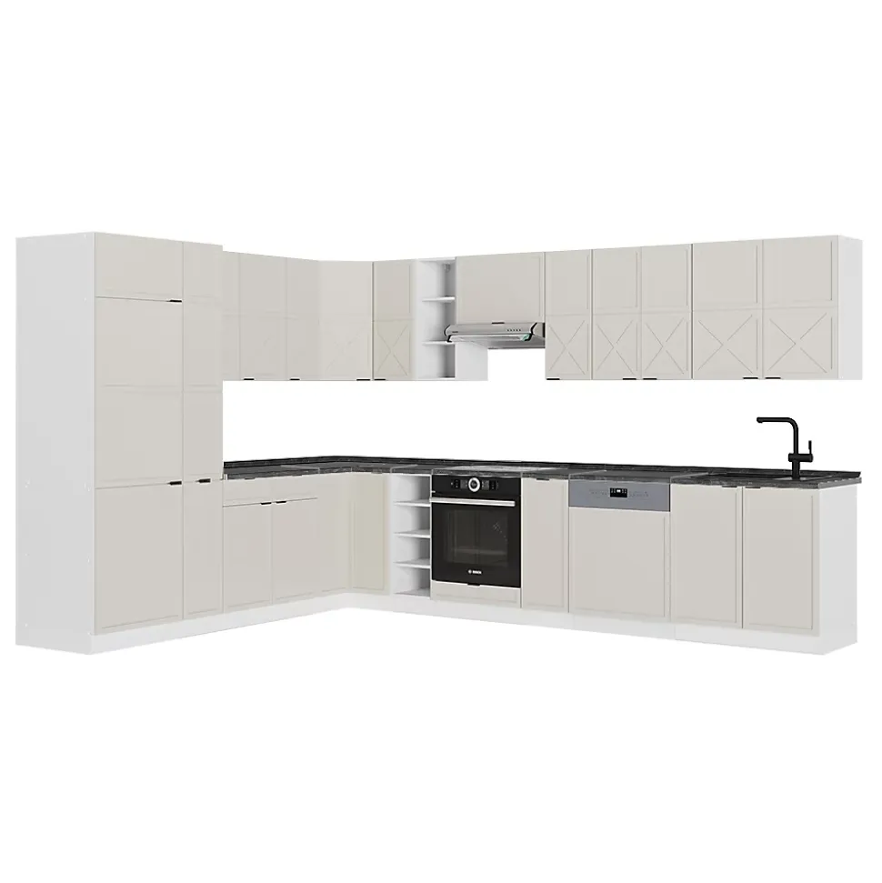 Vicco Cuisine en angle GrisBeige/Blanc 347x257cm , PT Anthracite