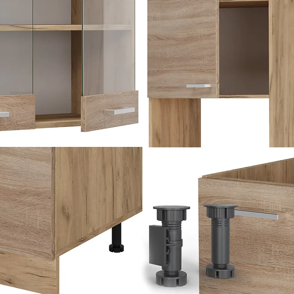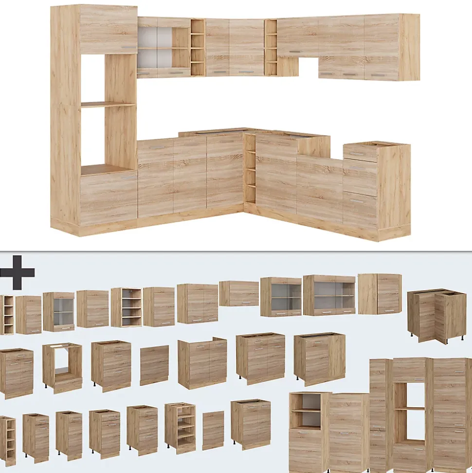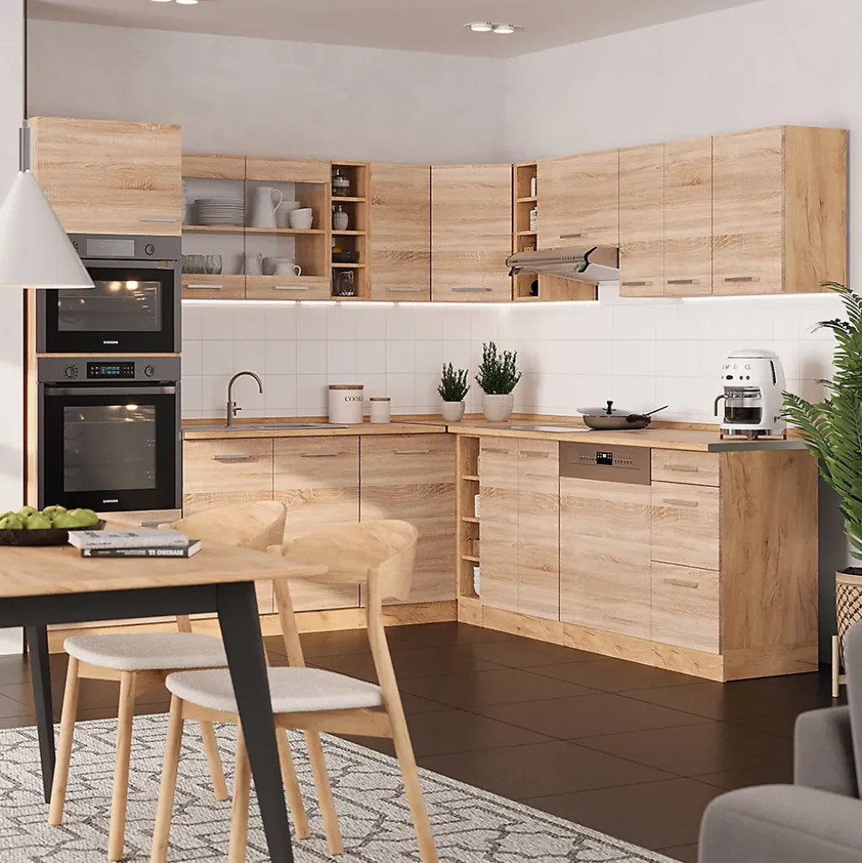 Les cuisines de la série R-Line se distinguent par un design optimal et une polyvalence exceptionnelle. En option, nous proposons le système LED Vicco ou une large gamme d’éviers Bergstroem.Notre cuisine se compose de modules convertis à votre guise. Vous pouvez également obtenir des modules supplémentaires. Les pieds sont ajustables en hauteur pour un confort optimal.DIMENSIONS : La Cuisine en forme de L a une taille générale de 237×247 cm, la profondeur et la hauteur des modules inférieurs et supérieurs sont présentées sur les photos. Les meubles bas ont une profondeur de 46 cm.MATÉRIAU: La cuisine modulaire en angle est composée de panneaux de particules de 16 mm faciles à entretenir, avec un revêtement en résine mélamine.CONTENU DE LIVRAISON : bloc de cuisine avec plan de travail, matériel de montage, instructions de montage (sauf indication contraire, les appareils électroménagers et les décorations ne sont pas compris dans la livraison).