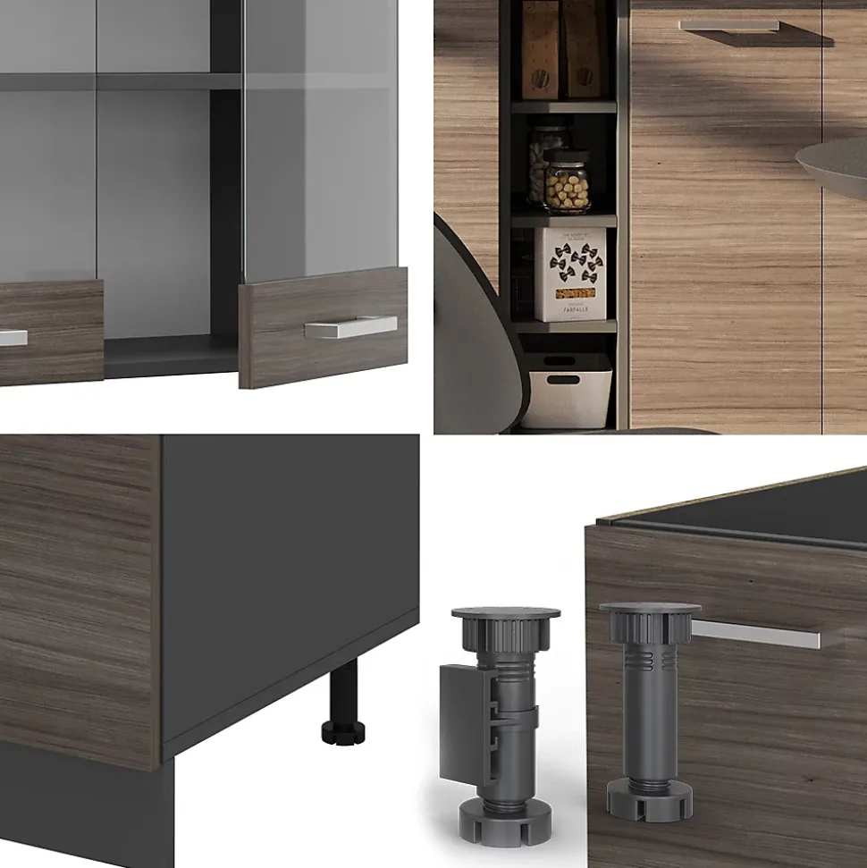 Les cuisines de la série R-Line se distinguent par un design optimal et une polyvalence universelle. En option, nous proposons également des panneaux de lave-vaisselle entièrement intégrés de la marque Vicco.La mini cuisine offre de nombreux avantages grâce à ses caractéristiques uniques. Les modules peuvent être convertis selon vos préférences et vous pouvez même obtenir des modules supplémentaires pour répondre à vos besoins spécifiques.DIMENSIONS : Le Bloc de cuisine a une taille générale de 160 cm, la profondeur et la hauteur des modules inférieurs et supérieurs sont présentées sur les photos. Les meubles bas ont une profondeur de 46 cm.MATÉRIAU: La kitchenette est composée de panneaux de particules de 16 mm faciles à entretenir, avec un revêtement en résine mélamine.CONTENU DE LIVRAISON : bloc de cuisine avec plan de travail, matériel de montage, instructions de montage (sauf indication contraire, les appareils électroménagers et les décorations ne sont pas compris dans la livraison).