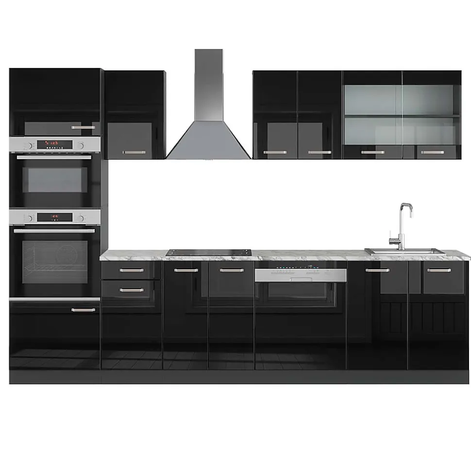 Vicco Cuisine Noir brillant/Anthracite 300cm avec armoire haute, PT Marbre