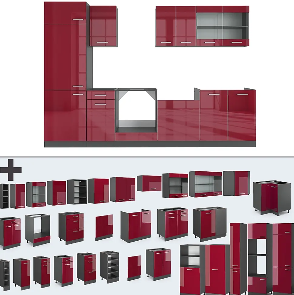 Les cuisines de la série R-Line se distinguent par un design optimal et une polyvalence universelle. En option, nous proposons également des panneaux de lave-vaisselle entièrement intégrés de la marque Vicco.La kitchenette offre des modules convertis selon les souhaits du client, avec la possibilité d’obtenir des modules supplémentaires au besoin. Les pieds sont ajustables pour une hauteur personnalisée.DIMENSIONS : Le Bloc de cuisine a une taille générale de 300 cm, la profondeur et la hauteur des modules inférieurs et supérieurs sont présentées sur les photos. Les meubles bas ont une profondeur de 46 cm.MATÉRIAU: La kitchenette modulaire est composée de panneaux de particules de 16 mm faciles à entretenir, avec un revêtement en résine mélamine.CONTENU DE LIVRAISON : bloc de cuisine avec plan de travail, matériel de montage, instructions de montage (sauf indication contraire, les appareils électroménagers et les décorations ne sont pas compris dans la livraison).