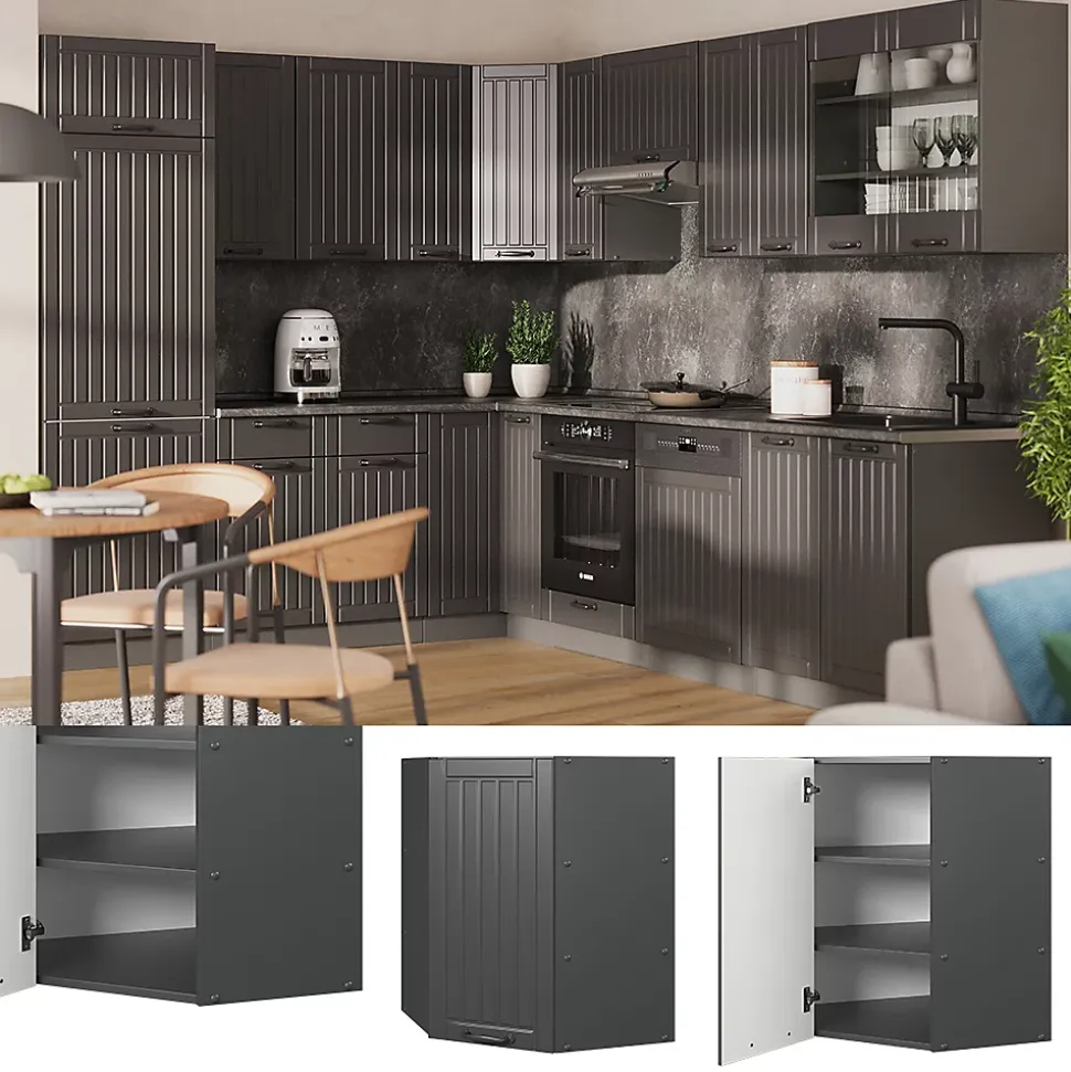 Les armoires de cuisine Fame-Line offrent une qualité premium avec des poignées métalliques solides, des charnières soft-closing pratiques et des coulisses métalliques à sortie totale à des prix raisonnables.Créez la cuisine de vos rêves : « Fame-Line » permet une composition individuelle à partir de différents modules.DIMENSIONS : Le Meuble cuisine d’angle mesure 57×57 cm – Largeur, 72 cm – Hauteur, 34,1 cm – Profondeur. Toutes les tailles détaillées sont indiquées sur les photos.MATÉRIAU: L’armoire de cuisine d’angle murale est composée de panneaux de particules de 16 mm faciles à entretenir, avec un revêtement en résine mélamine. Les façades sont fabriquées en MDF de haute qualité.CONTENU DE LA LIVRAISON: Meuble haut d’angle à monter soi-même (Remarque: la décoration n’est pas incluse dans la livraison), Instructions de montage, Matériel de montage.