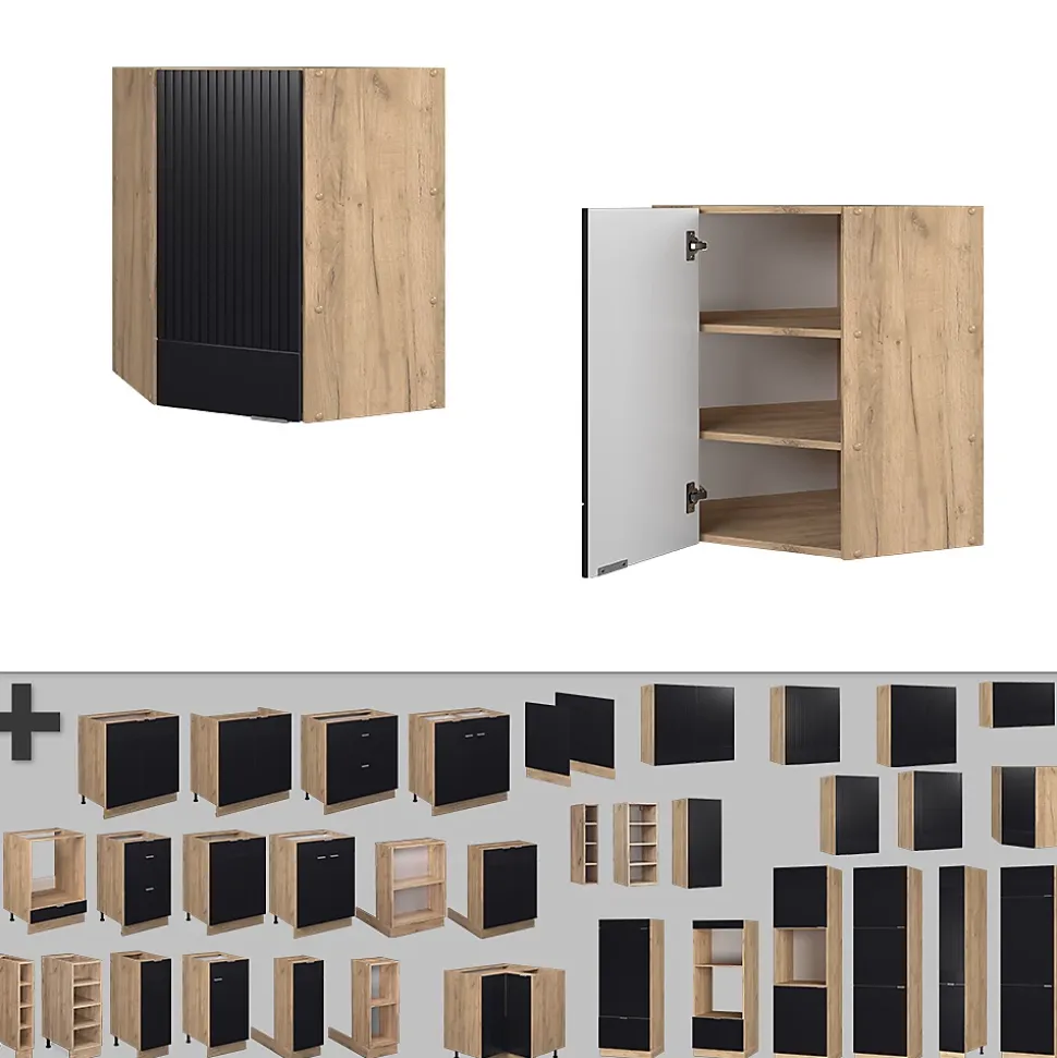 Les armoires de cuisine Fame-Line offrent une qualité premium avec des poignées métalliques solides, des charnières soft-closing pratiques et des coulisses métalliques à sortie totale à des prix raisonnables.Créez la cuisine de vos rêves : « Fame-Line » permet une composition individuelle à partir de différents modules.DIMENSIONS : Le Meuble cuisine d’angle mesure 57×57 cm – Largeur, 72 cm – Hauteur, 34,1 cm – Profondeur. Toutes les tailles détaillées sont indiquées sur les photos.MATÉRIAU: L’armoire de cuisine d’angle murale est composée de panneaux de particules de 16 mm faciles à entretenir, avec un revêtement en résine mélamine. Les façades sont fabriquées en MDF de haute qualité.CONTENU DE LA LIVRAISON: Meuble haut d’angle à monter soi-même (Remarque: la décoration n’est pas incluse dans la livraison), Instructions de montage, Matériel de montage