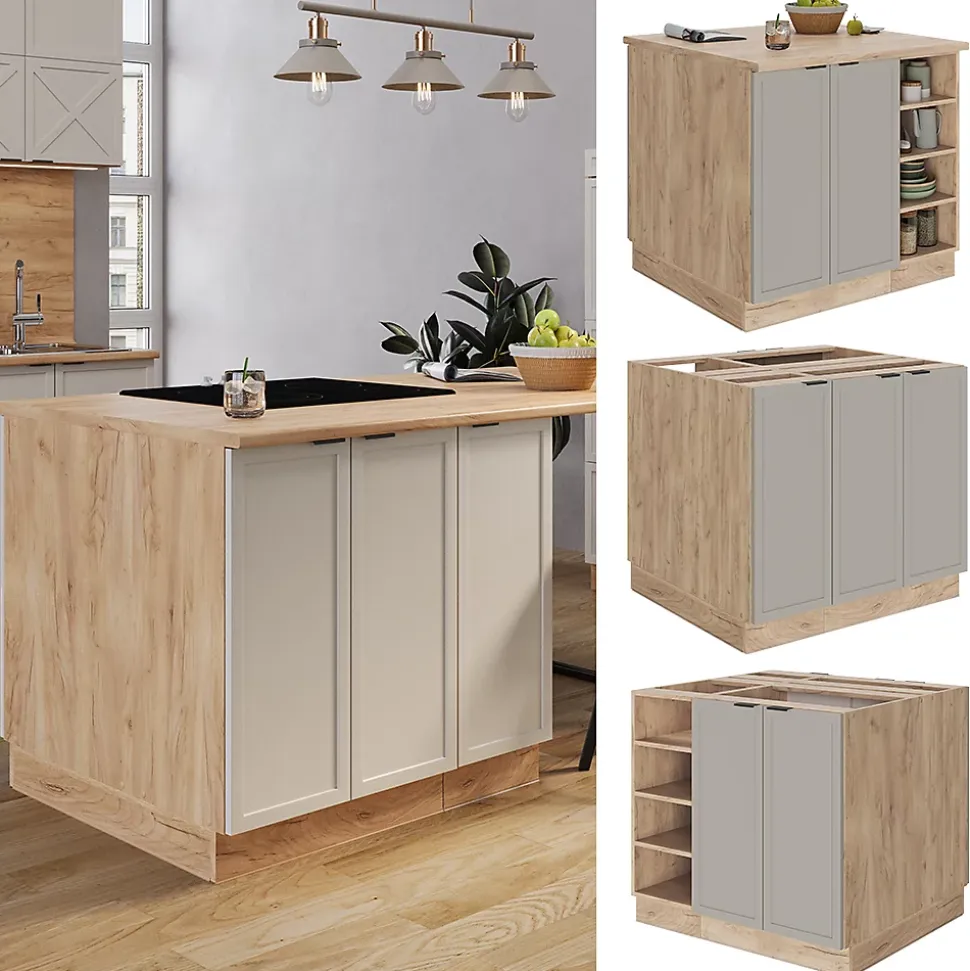 Les armoires de cuisine Fame-Line offrent une qualité premium avec des poignées métalliques solides, des charnières soft-closing pratiques et des coulisses métalliques à sortie totale à des prix raisonnables.Avec « Fame-Line », choisissez entre des concepts de cuisine prêts à l’emploi ou élargissez-les à votre guise avec des modules supplémentaires.DIMENSIONS : Le meuble bas de cuisine mesure 90 cm – Largeur, 82 cm – Hauteur, 82 cm – Profondeur. Toutes les tailles détaillées sont indiquées sur les photos.MATÉRIAU: L’élément bas de cuisine est composée de panneaux de particules de 16 mm faciles à entretenir, avec un revêtement en résine mélamine. Toutes les façades des unités de cuisine sont fabriquées en MDF de haute qualité.CONTENU DE LA LIVRAISON: Îlot de cuisine, (Sauf indication contraire, les appareils électriques et la décoration ne sont pas inclus dans la livraison.)Instructions de montage, Matériel de montage.