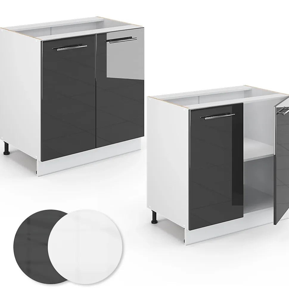 Vicco Meuble bas sous-évier Anthracite Haute brillance 80cm avec étagère, PT Marbre