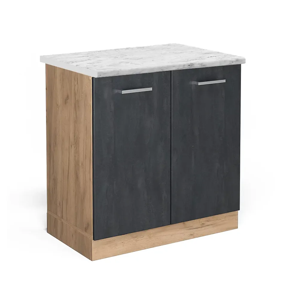 Vicco Meuble bas sous-évier Béton noir 80cm PT Marbre