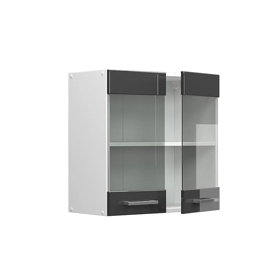 Ce meuble haut de cuisine R-Line est le complément idéal pour votre cuisine. Son design optimal s’adapte à chaque maison et offre un plaisir d’utilisation inégalé. Son apparence agréable ne manquera pas de vous séduire.Cet élément haut de cuisine propose des modules modulables selon vos besoins et des modules supplémentaires disponibles. Il possède deux portes en verre et une étagère fermée.DIMENSIONS : Le Meuble de cuisine vitré mesure 60 cm – Largeur, 60 cm – Hauteur, 31 cm – Profondeur. Toutes les tailles détaillées sont indiquées sur les photos.MATÉRIAU: Le meuble suspendu vitré est composé de panneaux de particules de 16 mm faciles à entretenir, avec un revêtement en résine mélamine.CONTENU DE LA LIVRAISON: Armoire de cuisine pour montage soi-même (Remarque : la décoration n’est pas incluse dans la livraison), Instructions de montage, Matériel de montage.