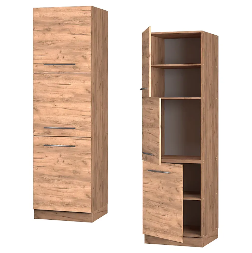 Fame-Line – Les armoires de cuisine offrent une qualité premium avec des poignées métalliques solides, des charnières soft-closing pratiques et des coulisses métalliques à sortie totale à des prix raisonnables.L’armoire de la cuisinière peut être complétée par des modules supplémentaires et peut être déplacée de manière flexible.DIMENSIONS : l’armoire de cuisine pour la cuisinière encastrée a une largeur de 60 cm, une hauteur de 206,8 cm et une profondeur de 58,1 cm. Toutes les dimensions détaillées sont indiquées sur les photos.MATÉRIAU : le meuble de cuisine est composé de panneaux de particules de 16 mm d’épaisseur, faciles à entretenir et revêtus de résine mélamine.LIVRAISON : Armoire de cuisine en kit, instructions de montage, matériel de montage.