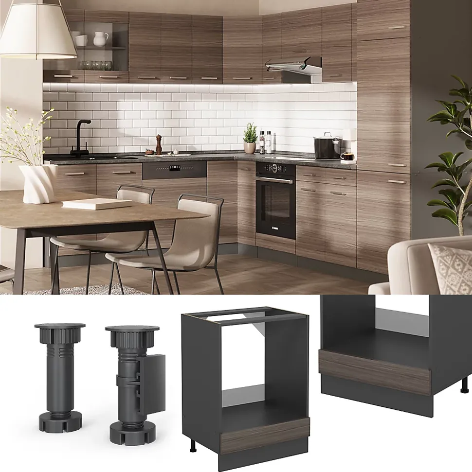 Ce meuble « R-Line » est la solution idéale pour chaque maison, offrant une bonne conception et un design optimal pour optimiser l’espace. Son apparence agréable et son utilisation facile en font un plaisir quotidien.Ce meuble cuisine est modulaire et adaptable à vos besoins. Vous pouvez obtenir des modules supplémentaires selon vos envies. Les pieds ajustables permettent de régler la hauteur.DIMENSIONS : Le Meuble four et plaque mesure 60 cm – Largeur, 81,6 cm – Hauteur, 60 cm – Profondeur. Toutes les tailles détaillées sont indiquées sur les photos.MATÉRIAU: Le meuble pour cuisinière est composé de panneaux de particules de 16 mm faciles à entretenir, avec un revêtement en résine mélamine.CONTENU DE LA LIVRAISON : Armoire de cuisine avec plan de travail, matériel de montage, instructions de montage (sauf indication contraire, les appareils électroménagers et les décorations ne sont pas compris dans la livraison)