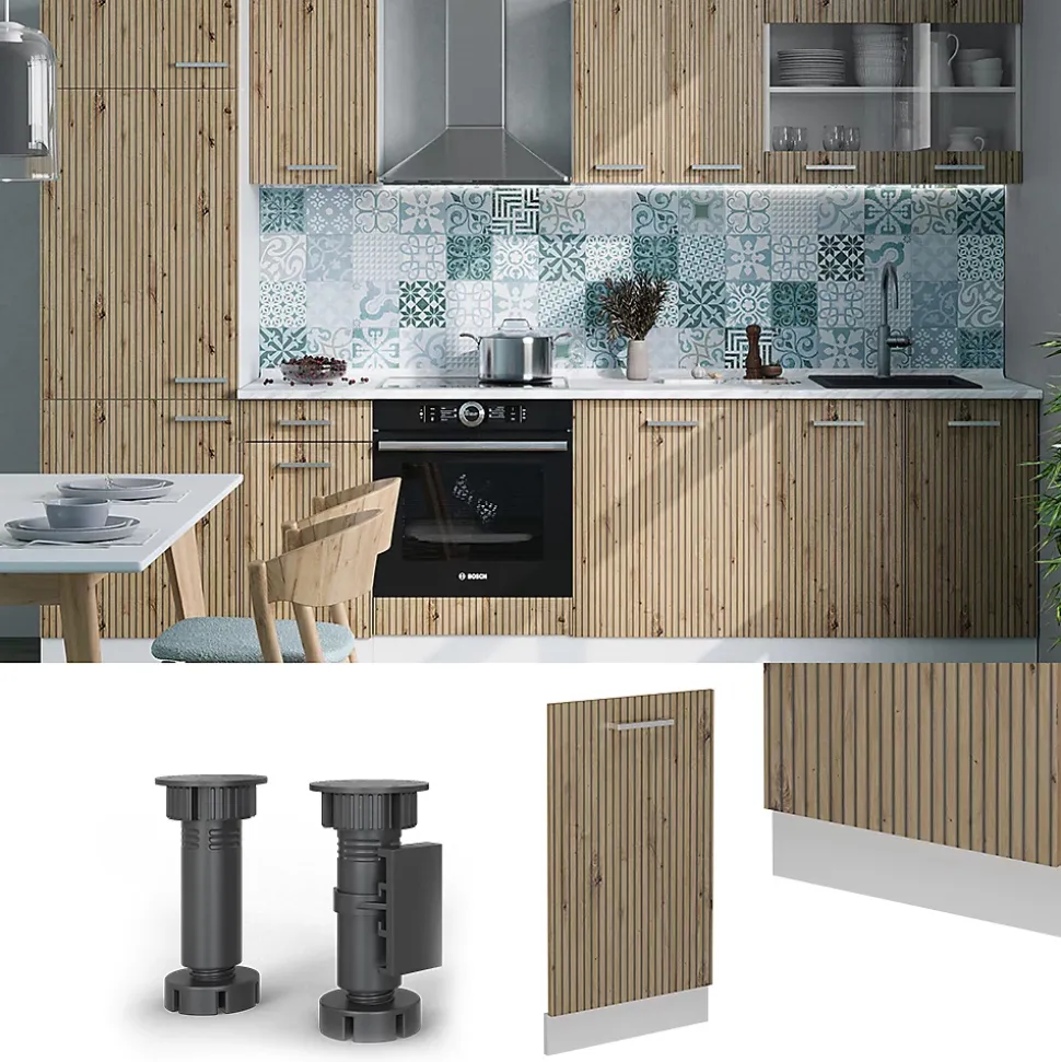 Le panneau frontal « R-Line » est idéal pour les lave-vaisselle avec panneau de commande intérieur – stylé et facile à utiliser.La porte frontale du lave-vaisselle s’adapte parfaitement à toutes les cuisines R-Line et offre des possibilités d’adaptation flexibles – idéal pour les lave-vaisselle entièrement intégrés.DIMENSIONS : La façade pour le lave-vaisselle a les dimensions suivantes : profondeur : 1,6 cm, largeur : 45 cm, hauteur : 81,8 cm.MATÉRIAU : la façade est en panneau de particules facile à entretenir, 16 mm, revêtement en résine de mélamine.LIVRAISON : Façade de lave-vaisselle en kit (remarque : la décoration n’est pas comprise dans la livraison), instructions de montage, matériel de montage