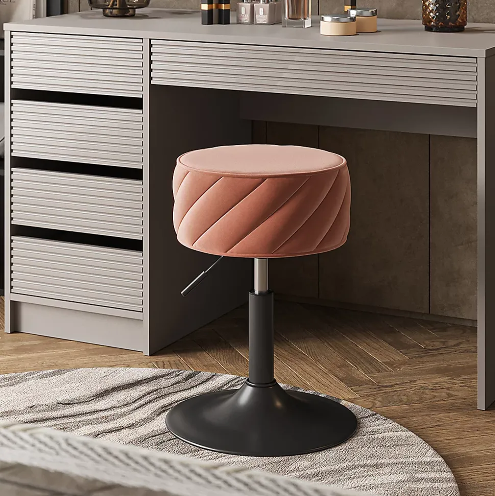 Que ce soit comme siège confortable pour la coiffeuse ou comme tabouret d’appoint tendance dans la chambre à coucher, le salon ou la salle de bains, « Cherio » attire le regard dans chaque pièce grâce à son design esthétique.Le tabouret de la table de maquillage offre une assise confortable pour le stylisme et le maquillage quotidiens. Avec son design élégant et sa construction stable, il garantit une utilisation de longue durée.DIMENSIONS : Le tabouret pour la coiffeuse a les dimensions suivantes : pied Ø 38,5 cm, assise Ø 35 cm. Hauteur : 50,5-64 cm. Les dimensions détaillées sont indiquées sur les photos.MATÉRIAU : le pouf est fabriqué en polyester et en métal. Les matériaux sont faciles à entretenir et à nettoyer.LIVRAISON : tabouret, instructions de montage, matériel de montage (décoration non comprise)