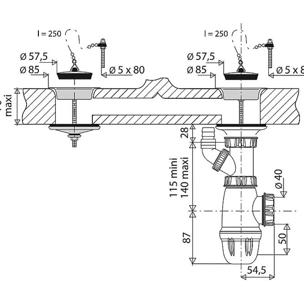 Pour éviers grèsHauteur du siphon réglable ± 42 mmDiamètre de perçage : 60 mmSortie 1’1/2