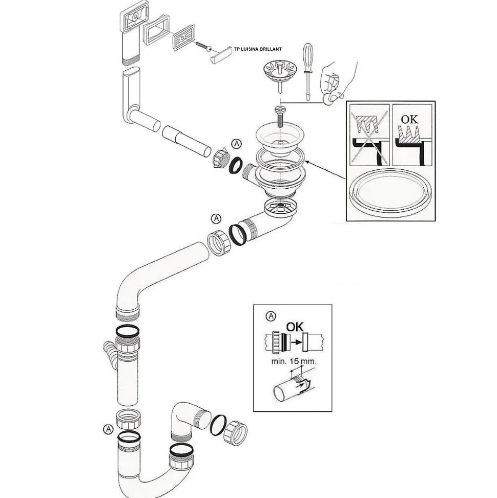 <p•• Vidage évier manuel 1 bac•• Pour évier inox VIBRATO•• Pour évier de la marque Luisina•• Bonde évier Ø 90 mm•