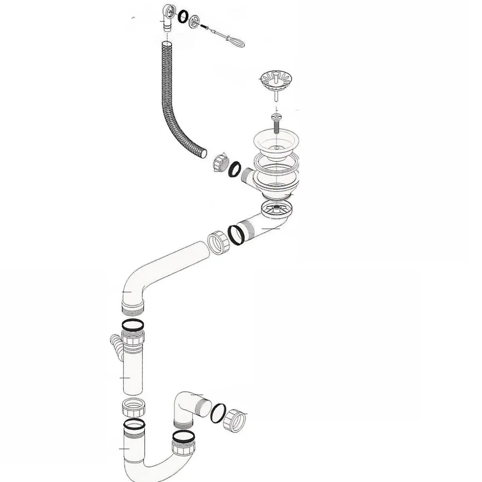 <p•• Bonde évier 90 mm•• Avec siphon gain de place•• Pour évier granit 1 bac •• Trop plein rond vertical