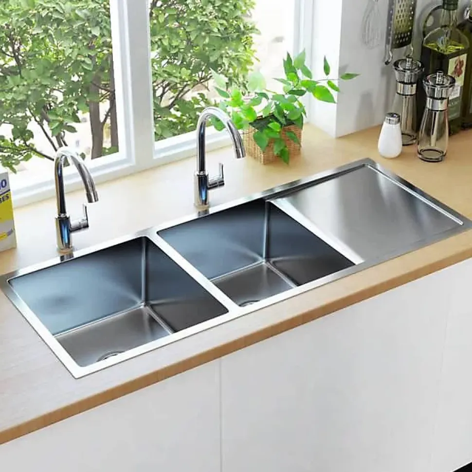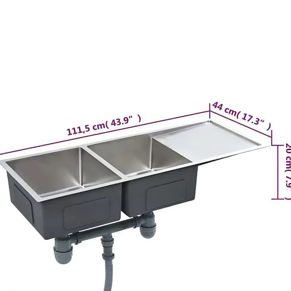 L’aspect et la convivialité de notre évier de cuisine fait à la main en acier inoxydable digne d’un designer est tout simplement fascinant. La finition satinée lisse et soyeuse avec deux bols contemporains dégage un charme classique et sophistiqué !