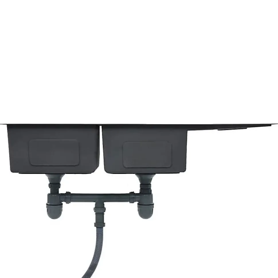 - Double vasque extra-profonde avec design à canal en X pour un écoulement rapide