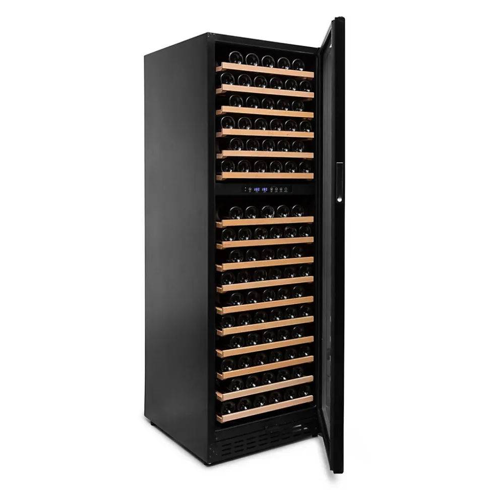 Vinobox 168 est une armoire à vin faites par des amateurs de vin pour des amateurs de vin, avec un design élégant et innovant. Aussi bon pour la consommation courante que pour la garde à long terme. La Collection Vinobox Grand Cru est une marque espagnole garantie 3 ans pour une tranquillité d’esprit. SPÉCIFICATIONS DE L’ARMOIRE À VIN VINOBOX 168Capacité de 168 bouteilles (selon disposition). Puissance : 160 W (260 kWh/an) – Classe G (ex Classe B). Volume de 430 litres. Température réglable de 5 à 18 ºC. Choix de 1 ou 2 zones. Humidité constante ≥ 65 %.16 étagères amovibles en bois sur rails de sécurité. Porte triple-vitrée, isolante, réversible, traitée anti-UV. Affichage numérique de contrôle de la température avec voyant lumineux. Éclairage intérieur. Quatre pieds réglables en hauteur. Système No-Frost. Verrouillable. Froid par compresseur monté sur caoutchouc anti-vibrations et ventilé. Couleur noire. Cadre de porte : Noir59,5 cm de largeur sur 182cm de hauteur et 68cm de profondeur. Poids de 125 kg. Niveau de bruit faible (44 dB). Vinobox 168 a une garantie de 3 ans.