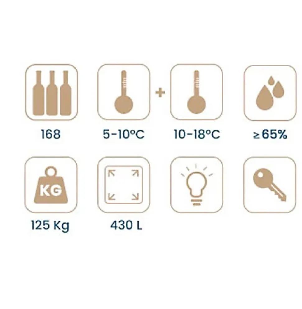 La cave à vin Vinobox 168 2 zones est une chambre de service pour de grandes quantités de vin en garde. Parfait pour les professionnels, de par sa grande capacité et sa fiabilité, et pour les grands amateurs de vin qui souhaitent conserver leurs vins dans les meilleures conditions. 59,5 cm de largeur sur 182cm de hauteur et 68cm de profondeur.