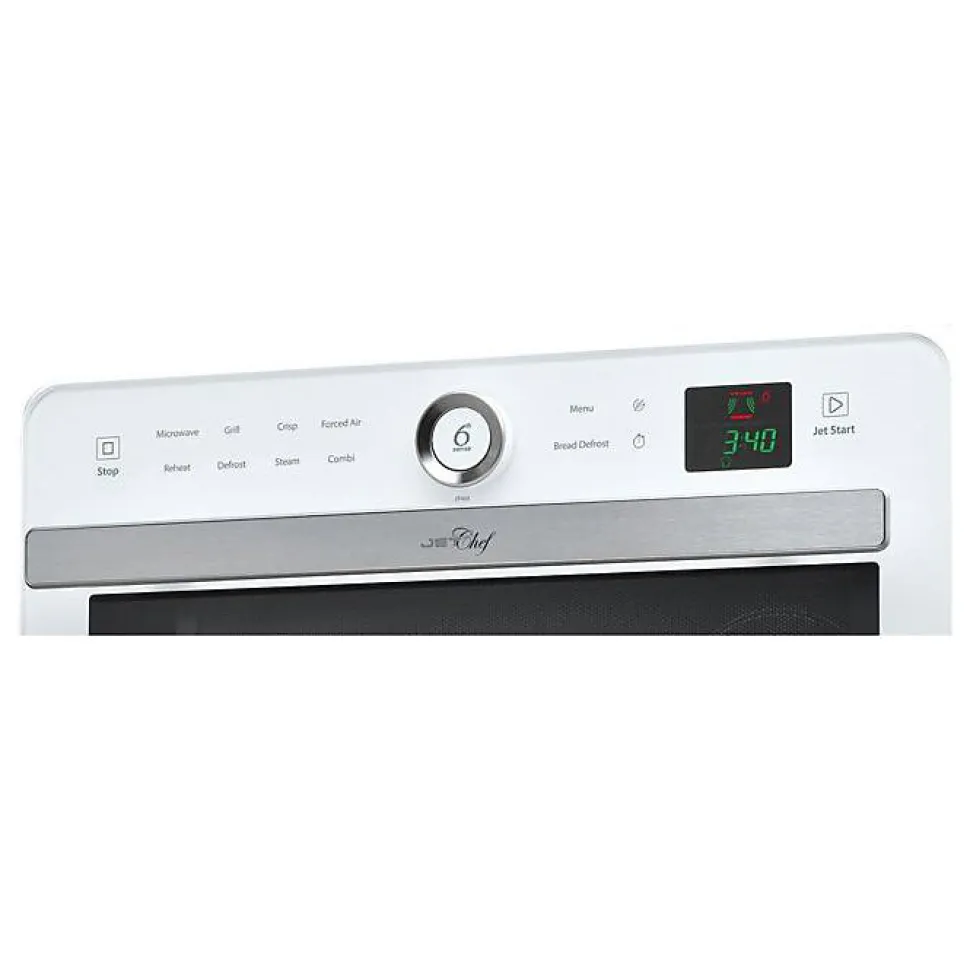 Micro-ondes posable, JET CHEF, Combiné, Blanc, Porte abattante repose-plat, 33 L, Electronique, Cavité Inox, Plateau 36cm, Débrayable, 8 niveaux de puissance, Puissance micro-ondes: 1000 W, Puissance gril: 1200 W, Puissance chaleur pulsée: 1500 W, Emission d’ondes 3D-system, 6ème Sens, Cuisson CRISP, Cuisson VAPEUR, Dé