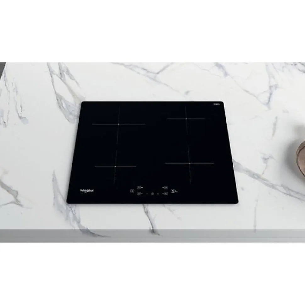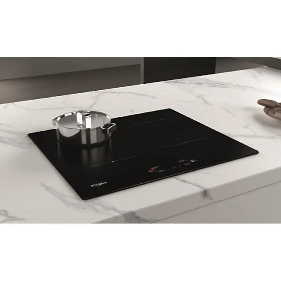 Plaque induction Whirlpool WSQ2160NE, 7200W, 4 foyers dont 1 zone Ø 21 cm 3 kW, contrôle tactile électronique, surface verre-céramique, fonctions sécuritaires avancées, installation encastrable, garantie 10 ans pièces.