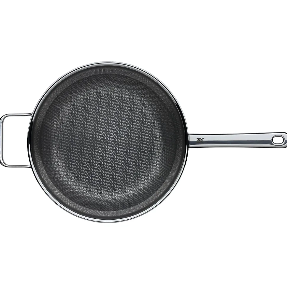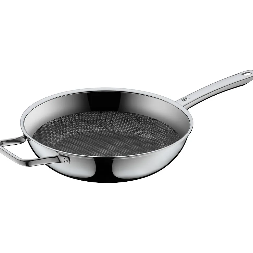 Wok en inox 28cm acier Wmf – La poêle wok Profi Resist Wmf 1756486411 réunit les avantages d’une poêle en acier inoxydable et du revêtement antiadhésif. Le revêtement antiadhésif délicat est protégé par la structure nid d’abeilles en acier inoxydable de qualité. La surface de cuisson est donc durable et résiste aux éraflures et rayures. La cuisson nécessite peu de matière grasse. Rien n’accroche à la surface de cuisson et le nettoyage est un jeu d’enfant. La poêle Profi Resist vous permet de réussir la cuisson d’un steak juteux et de tous les autres plats qui doivent être saisis à haute température. La poêle en matériau multicouches est compatible tous feux dont induction. Disponible en 2 tailles, comme poêle à four ou wok. – Type de produit : Wok.Matière : Cromargan inox 18/10, aluminium et acier.Revêtement : Anti-adhésif.Fond diffuseur TransTherm.Tous feux dont induction.Convient au four jusqu’à 250°C sans couvercle.Hauteur (cm) : 7.Diamètre (cm) : 28.Couleur : acier.Poignée et contre-poignée ergonomiques.Bords verseurs.Passe au lave-vaissellePoids Net : 1,70 Kg.Poids Brut : 1,80 Kg.