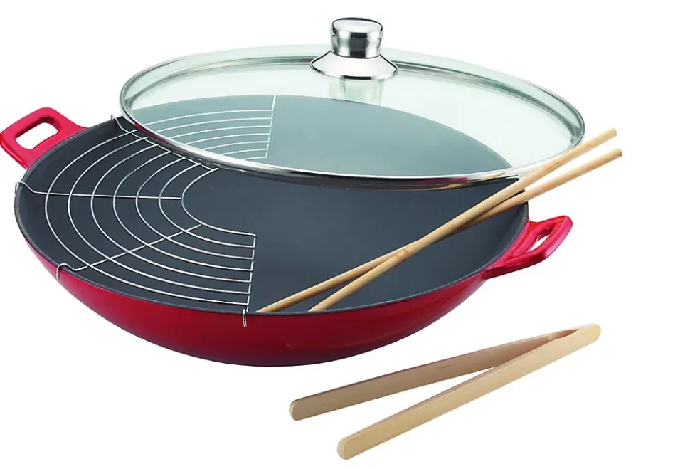 Le Wok vous permettra de cuisiner de nombreuses recettes asiatiques. Vous pouvez également réaliser des cuissons à la vapeur grâce à son couvercle. En emmagasinant la chaleur, la fonte vous permettra de garder vos plats au chaud. Ce design vous permettra également de présenter directement sur la table.Wok fonte émaillée diamètre 36. Couvercle en verre avec trou vapeur et bouton inox. Couleur extérieur rouge dégradé, intérieur émaillé noir. Tous feux dont induction.Collection : Fonte Matière : Fonte émaillée Couleur : Rouge Longueur : 44.00 cm Largeur : 37.00 cm Hauteur : 17.00 cm Compatible Lave-vaisselle