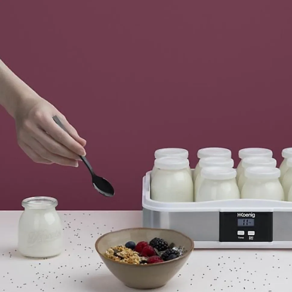 Réalisez de savoureux yaourts faits maison avec la yaourtiere ELY120 ! Programmable jusqu’a 15 heures a partir de son écran LCD, cette yaourtiere vous permet de préparer des yaourts a base de lait entier, écrémé, demi-écrémé ou végétal selon vos envies.