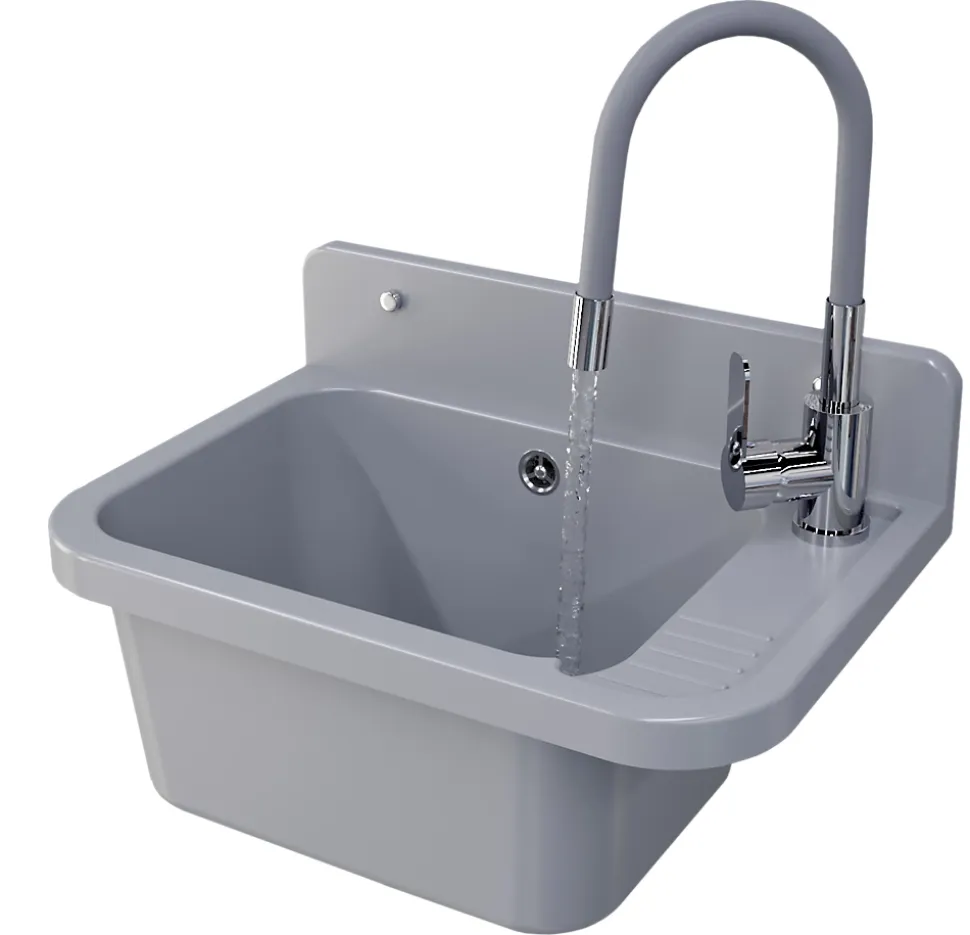 Description du produitL’évier Paron Granitan gris avec robinet extensible combine design moderne et fonctionnalité pratique. Fabriqué en polypropylène de haute qualité, il est résistant aux produits chimiques, idéal pour un usage domestique ou dans les espaces publics. Avec son robinet Gradus extensible et flexible, cet évier offre une grande liberté de mouvement et un confort optimal. L’ensemble inclut les accessoires de montage, comme un siphon équipé d’une connexion supplémentaire pour lave-vaisselle ou machine à laver, ce qui accroît sa polyvalence.Caractéristiques principalesDesign élégant qui s’adapte à différents styles d’intérieurRobinet en chrome-gris avec mécanisme interne en céramique, durable et fiableBec pivotant à 360° pour une utilisation flexibleFabriqué dans un matériau robuste et résistant aux produits chimiquesAccessoires inclus : évier et robinetConvient aux cuisines, salles de bain et espaces professionnelsDimensions : 50 cm de longueur x 34 cm de largeurPoids total (emballage compris) : 2 kgPourquoi choisir ce produit ?Cet évier offre un excellent rapport qualité-prix grâce à sa durabilité et son design soigné. Il est conçu pour répondre aux besoins quotidiens tout en ajoutant une touche moderne à votre espace. La flexibilité du robinet et les options de connexion supplémentaires augmentent sa praticité. Que ce soit pour une utilisation domestique ou professionnelle, l’évier Paron Granitan est une solution idéale, alliant style, fonctionnalité et durabilité.