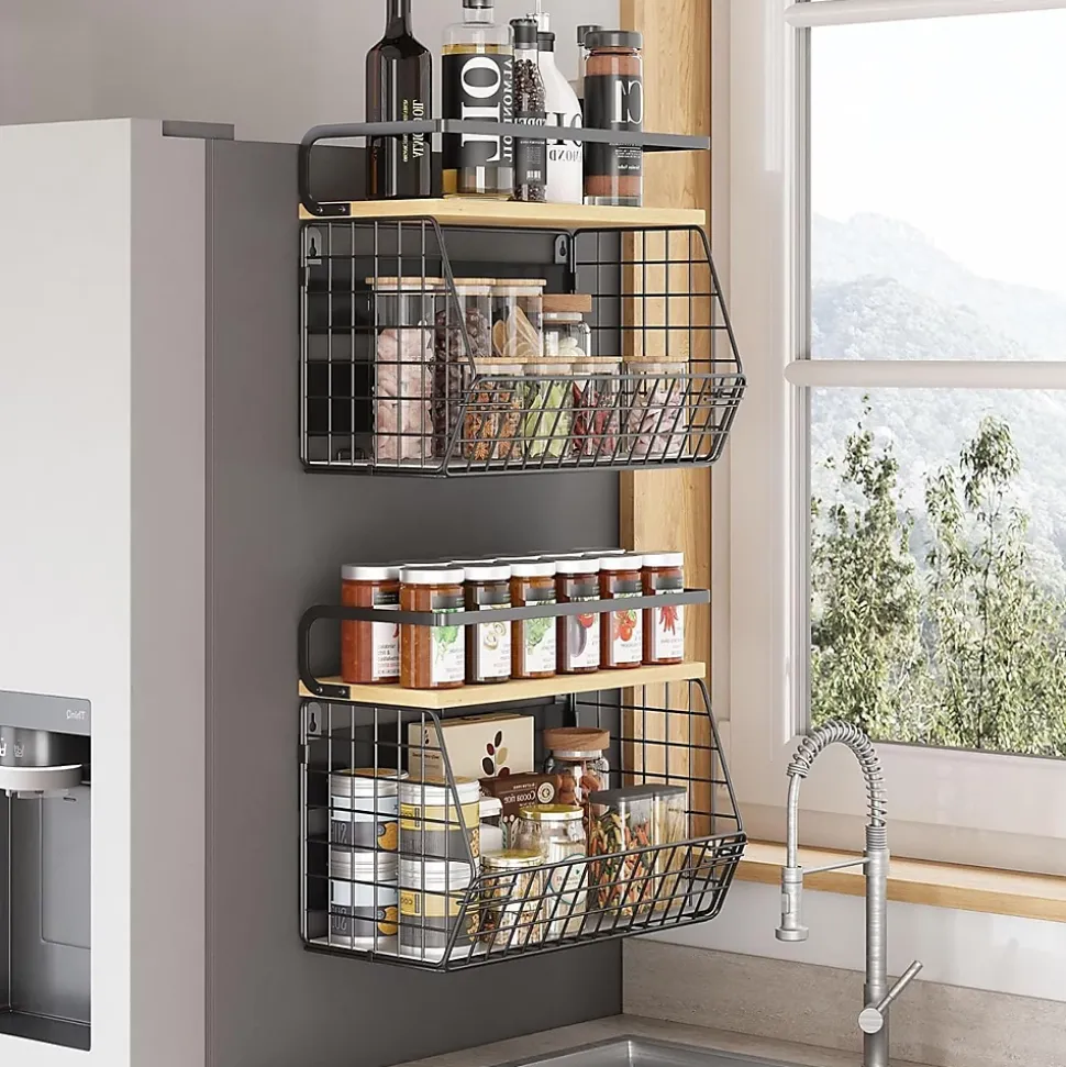 Organisez votre cuisine avec le panier corbeille suspendu UMDONX. Conçu pour ranger fruits, légumes, pain, pots d’épices, capsules de café, bouteilles et bocaux, il convient aussi à la salle de bain, au bureau ou au garde-manger. Facile à installer sur toute surface métallique verticale, il ne nécessite pas de perçage et ne laisse pas de traces sur le mur. Fabriqué en acier au carbone de haute qualité avec fond en fil dense et couvercle en bois massif, il est robuste, durable et empêche les objets de tomber. La forme en U du devant facilite l’accès aux articles. Compact et pratique (35 × 17 × 29,5 cm), il maximise l’espace de rangement et apporte une touche esthétique à votre cuisine.