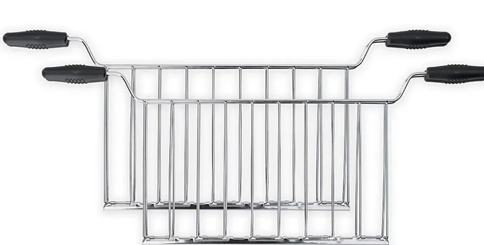 2 pinces inox pour sandwich Smeg – Cage à sandwich pour grille pain SMEG TSSR02. – Accessoire pour grille-pain 4 tranches TSF02.Type d’appareil : Toaster.Couleur : Acier inoxydable.Nombres de pinces : 2.Base et grilles : en acier.Poignées : en plastique résistantes à la chaleur.Poids net (pour 1 pince) : 0,32 kg.Dimensions HxLxP (pour 1 pince) : 434x173x32mm.