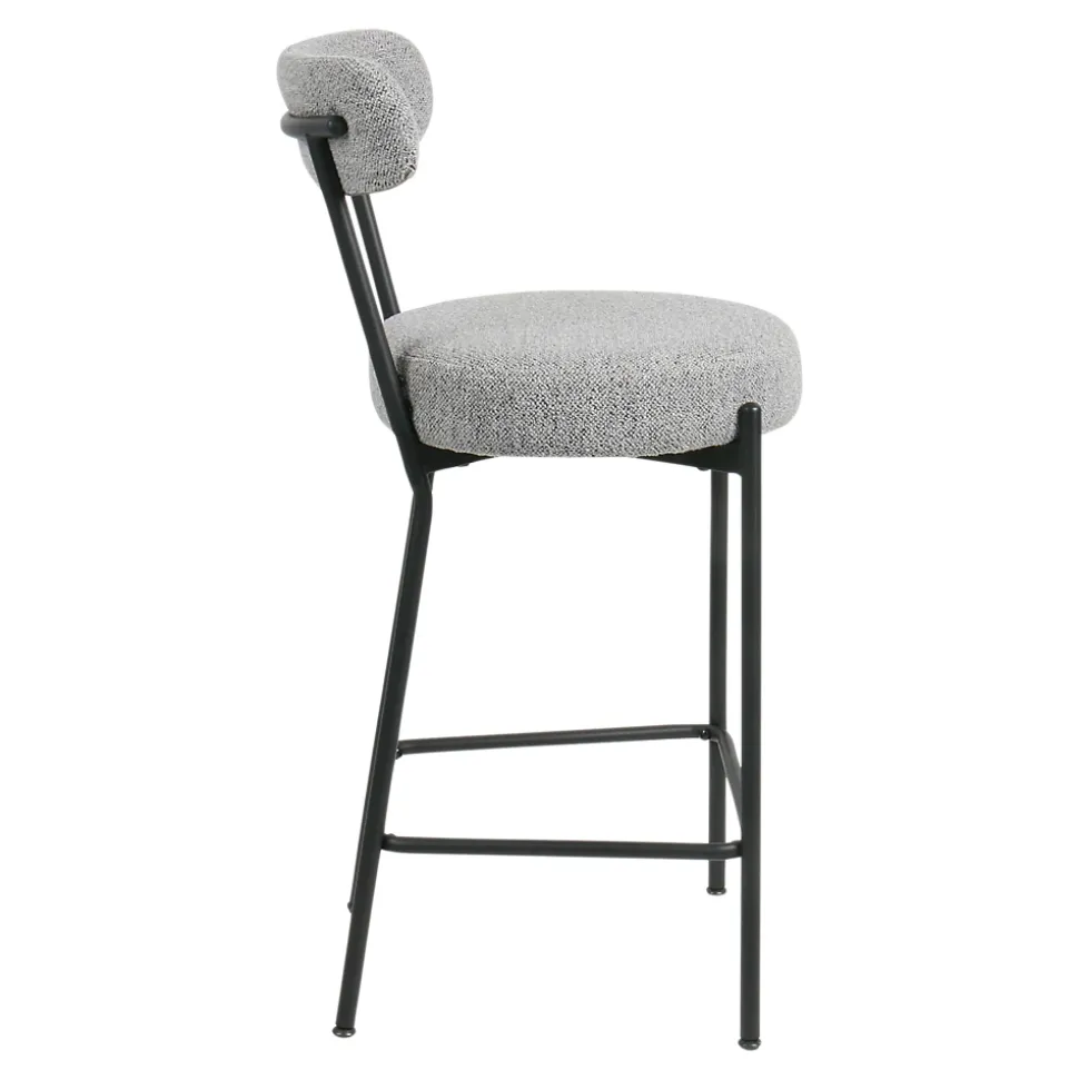 Deux chaises hautes avec assise et dossier en polyester gris, une finition textile effet bouclette, et structure noire. Le repose-pieds vous assure un maintient agréable et le dossier vous offre un véritable confort. Passez des moments chaleureux autour de votre bar ou votre table haute et apportez une touche esthétique à votre intérieur grâce à ces 2 chaises hautes qui vous apporteront toute satisfaction.