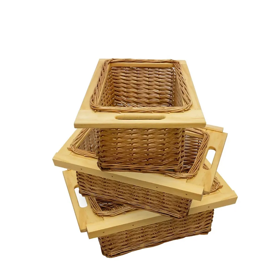 Ces luxueux paniers en osier tissés à la main offrent une touche rustique de rangement, parfaits pour une cuisine de style campagnard.Proposant une solution de rangement extrêmement pratique et idéale pour les cuisines, les chambres à coucher, la salle à manger ou encore la buanderie.Grâce à sa conception en osier, l’air peut facilement circuler, préservant ainsi la durée de vie des produits frais. Fabriqués à partir de hêtre et de rotin de haute qualité, ces paniers sont légers et durables à la fois tout en étant suffisamment solides pour accueillir une masse allant jusqu’à 10 kg par panier.Les patins en bois de plage pré-percés et le cadre avec poignée intégrée les rendent faciles d’accès dans les vitrines ouvertes.Le kit de fixation inclus GRATUITEMENT permet un ajustement rapide afin que vous puissiez commencer à organiser votre maison, votre cuisine ou votre garage immédiatement.Caractéristiques du Produit :Paniers en osier de hêtre et de rotin 100 % faits à la main.Paniers solides pouvant contenir une massant allant jusqu’à 10 kg par panier.Convient pour une armoire d’une largeur d’armoire de 40cm.Kit de fixation inclus GRATUITEMENT. Spécifications Techniques :Couleur : BrunMatériel panier : OsierMatériel patins : HêtrePoids par panier : 1,4KGDimensions extérieures panier :Profondeur : 510mm / 51cmLargeur : 320mm / 32cmHauteur : 210mm / 21cmDimensions intérieures panier :Profondeur : 389mm / 38.9cmLargeur : 229mm / 22.9cmHauteur : 210mm / 21cmLongueur patin : 485mm / 48.5 cmLargeur patin : 30mm /