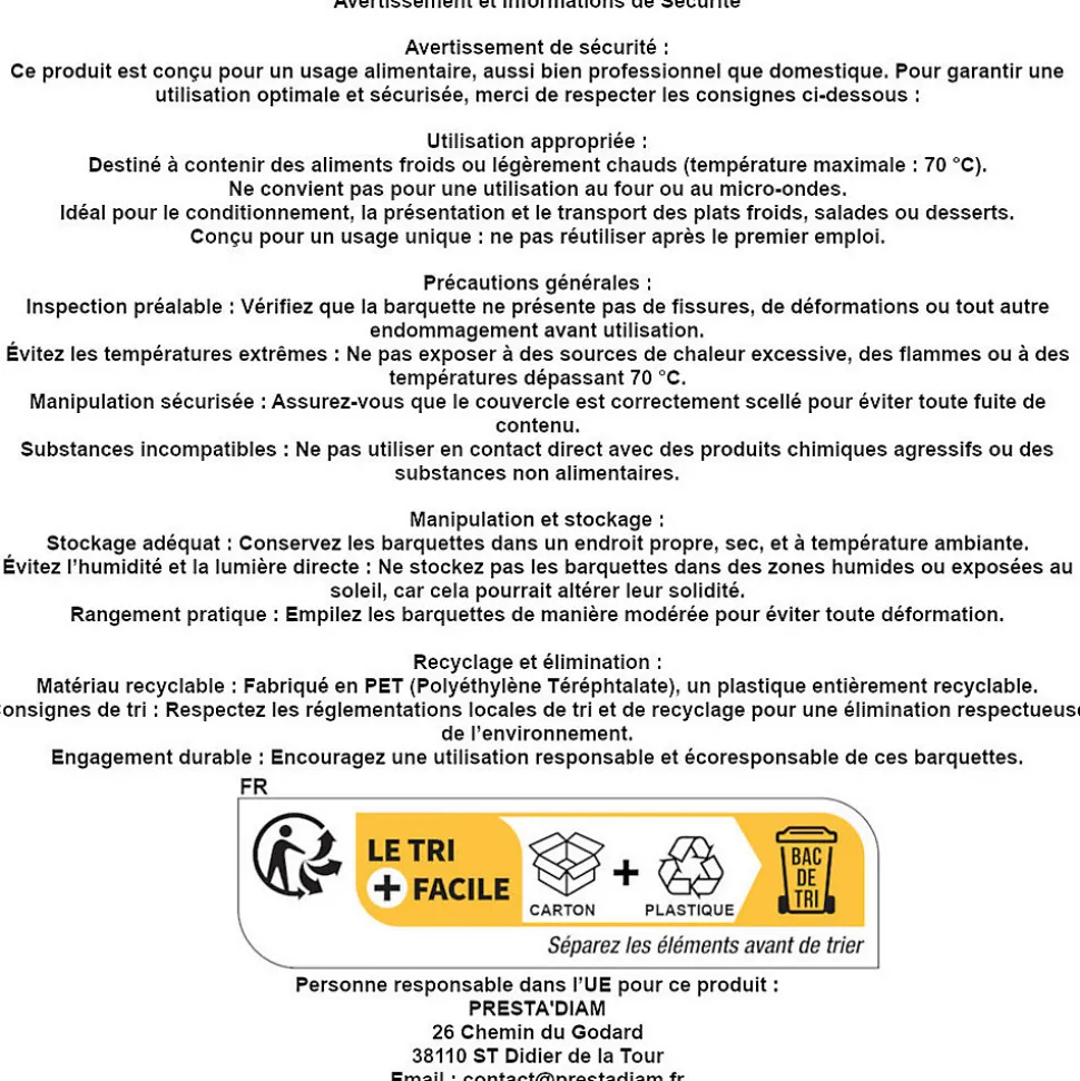 - ✅ MATIÈRE ALIMENTAIRE PET : Plastique rigide transparent, adapté au contact alimentaire, usage froid jusqu’à 60°C, recyclable