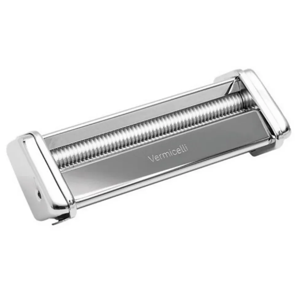 Accessoire vermicelles pour machine à pâtes atlas 150 Marcato – Accessoire vermicelles Marcato AC-150-VER adapté à la machine à pâtes Atlas 150, l’épaisseur recommandée de la feuille de pâtes est la position du régulateur n°5 sur la machine à pâtes, à utiliser à la main avec le manivelle ou avec le moteur Pastadrive. Adaptable sur la machine à pâtes Atlas 150, les vermicelli sont un format de pâtes de section circulaire et d’un diamètre 1 mm. L’épaisseur conseillée de la feuille de pâte correspond à la position n° 4 du régulateur de la machine à pâtes. L’accessoire est en acier avec des rouleaux en alliage d’aluminium anodisé alimentaire et des peignes en résine polymère, afin d’éviter la libération de poussières de métal sur les pâtes et garantir un produit 100 % sain et naturel. – Type de produit : Accessoire vermicelles.Type d’ustensiles de cuisine : Machine à pâtes.Forme pates : Rondes.Enfant : Non.Matériau du corps : Acier chromé.Ronde Ø 1 mm.Adaptable sur la machine à pâtes Atlas 150.Accessoire pasta mixer.Cet accessoire est conçu pour réaliser des vermicelle .Ces pâtes ont un format rond d’une largeur d’150 mm.En acier chromé avec des peignes en résine polymère.100% saint et naturel.Accessoire s’emboite facilement à la machine pasta mixer.Couleur : Chromé.