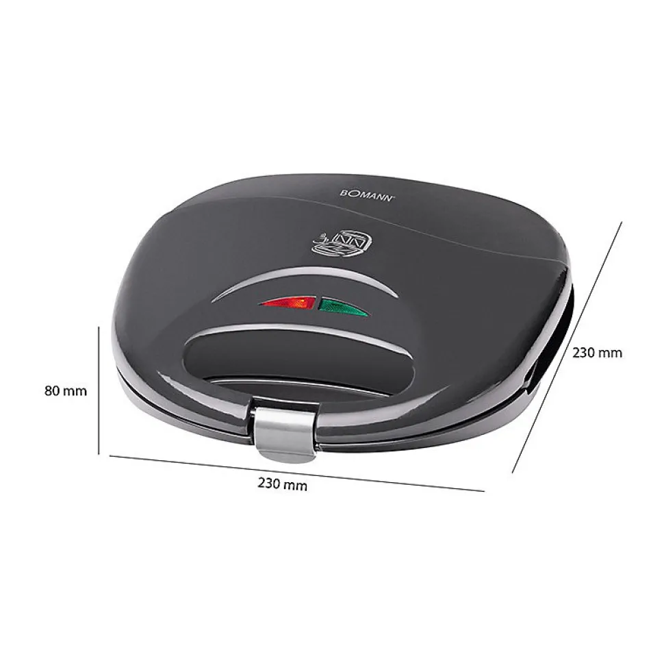 APPAREIL A CROQUE-MONSIEURPlaques creuses triangulairesRevêtement antiadhésifPoignée à isolation thermiqueRégulateur de température automatique2 voyants pour la puissance et le chauffage (lampes de cuisson)Système de verrouillageArrêt de sécuritéProtection contre la surchauffe220?240 V, 50/60 Hz, 750 W
