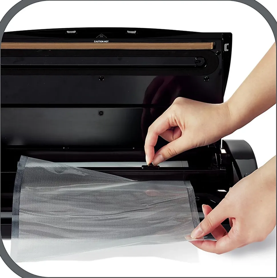 Appareil à emballage sous vide 130w noir/inox avec accessoires Tefal – Appareil à emballage sous vide Vacupack Plus Tefal YY3107FB conserve facilement toute la fraîcheur de vos aliments.Vide & soude automatiquementVacupack Plus conditionne hermétiquement les aliments dans un film plastique sous vide d?air pour une meilleure conservation.Préservez la saveur et la valeur nutritive de vos aliments plus longtemps.Quatre fonctions pour une utilisation intuitive de la mise sous vide, coupe à l?aide du couteau intégré le rouleau à la dimension désirée, vide et scellage automatiques, scellage seul et la fonction stop.Conservez la fraîcheur de vos aliments plus longtemps !Grâce à l’emballeuse sous-vide Vacupack Plus, dites Stop au gaspillage alimentaire. Conserver hermétiquement vos aliments dans un sac plastique sous vide d?air, pour préserver les saveurs et les nutriments de vos produits plus longtemps.Plusieurs fonctions sont disponibles pour s?adapter à votre utilisation et vos aliments : Coupe et soude, Vide et soude, sa fonction « Humide ou sec » adapte automatiquement la vitesse d?aspiration au type d?aliment choisi, ses fonctions « Soudure » et « Pulse » offrent un contrôle total afin de personnaliser manuellement l’extraction de l’air et la soudure.Son design et sa finition en inox s?adaptent parfaitement à une cuisine moderne. Pratique son range-cordon à l?arrière permet un gain de place. Facile à utiliserDéfinissez facilement la taille de votre sachet à l?aide du rouleau de film et du couteau intégré.Fonction « Humide ou sec »Permet d’adapter automatiquement la vitesse d?aspiration au type d?aliment choisi.Fonctions « Soudure » et « Pulse »Vous permet un contrôle manuel, idéal pour vous aliments les plus délicats tels que vos biscuits ou pâtisseries.2 rouleaux inclus + 2 boîtes repas et 1 tuyau d’aspirationLivré avec 2 rouleaux de conservation de tailles différentes : un moyen de 22 cm x 3 m et un grand de 28 cm x 3 m, ainsi que 2 boîtes repas sous vide de 600 ml
